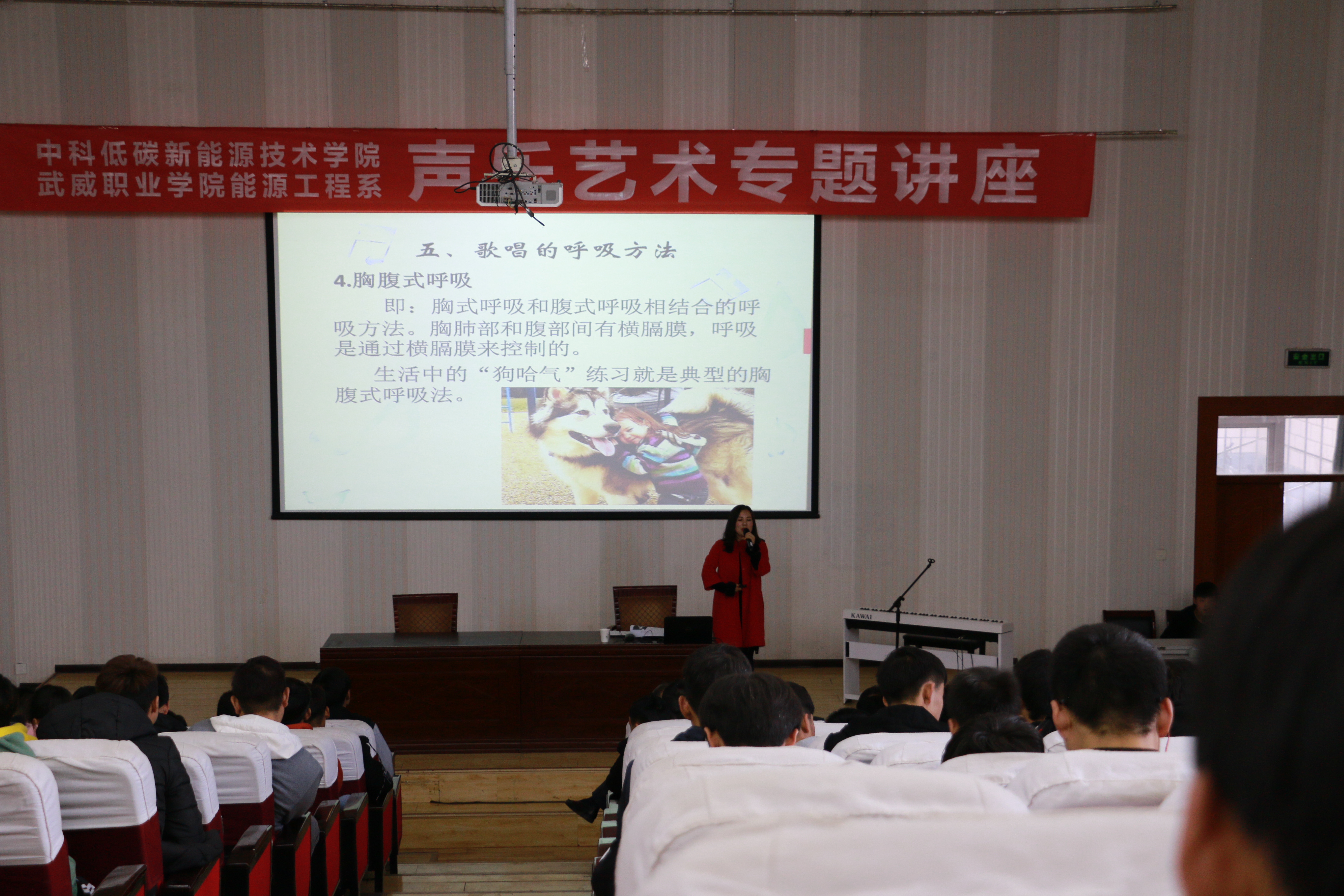 11月15日,學(xué)院邀請人文藝術(shù)教育系聲樂教師王小娟為18級新生舉辦了一場聲樂藝術(shù)專題講座,講座由能源工程系黨總支書記黃文源主持,部分教師參加了講座。