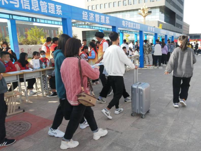 新生報到注冊在學院東門口進行,為了新生順利完成報到注冊,學院在火車站、汽車站分別設(shè)立了接待點,每一趟車到站,新生及家長一下車,眾多的迎新志愿者們帶領(lǐng)他們來到報到點,校門口還有我們的廣播員,提醒新生帶好隨身物品,學院還設(shè)置了家長休息區(qū),綠色通道,來到報到點還設(shè)有釘釘掃碼簽到,報到登記處、收費處,各項工作有序開展。每個環(huán)節(jié)均有各系志愿者熱情引導,悉心服務(wù),為新生及家長提供新生報到和問題解答的服務(wù)。迎新工作如火如荼,到處都是忙碌的身影。院團委學生會以及各系團學會的學長學姐們不厭其煩地為新生、家長回答著他們提出的各種問題。還幫學弟學妹們拎行李,一路談笑風生,帶領(lǐng)她們領(lǐng)取床鋪、飯卡,辦理入住等一系列手續(xù),人頭攢動,秩序井然。