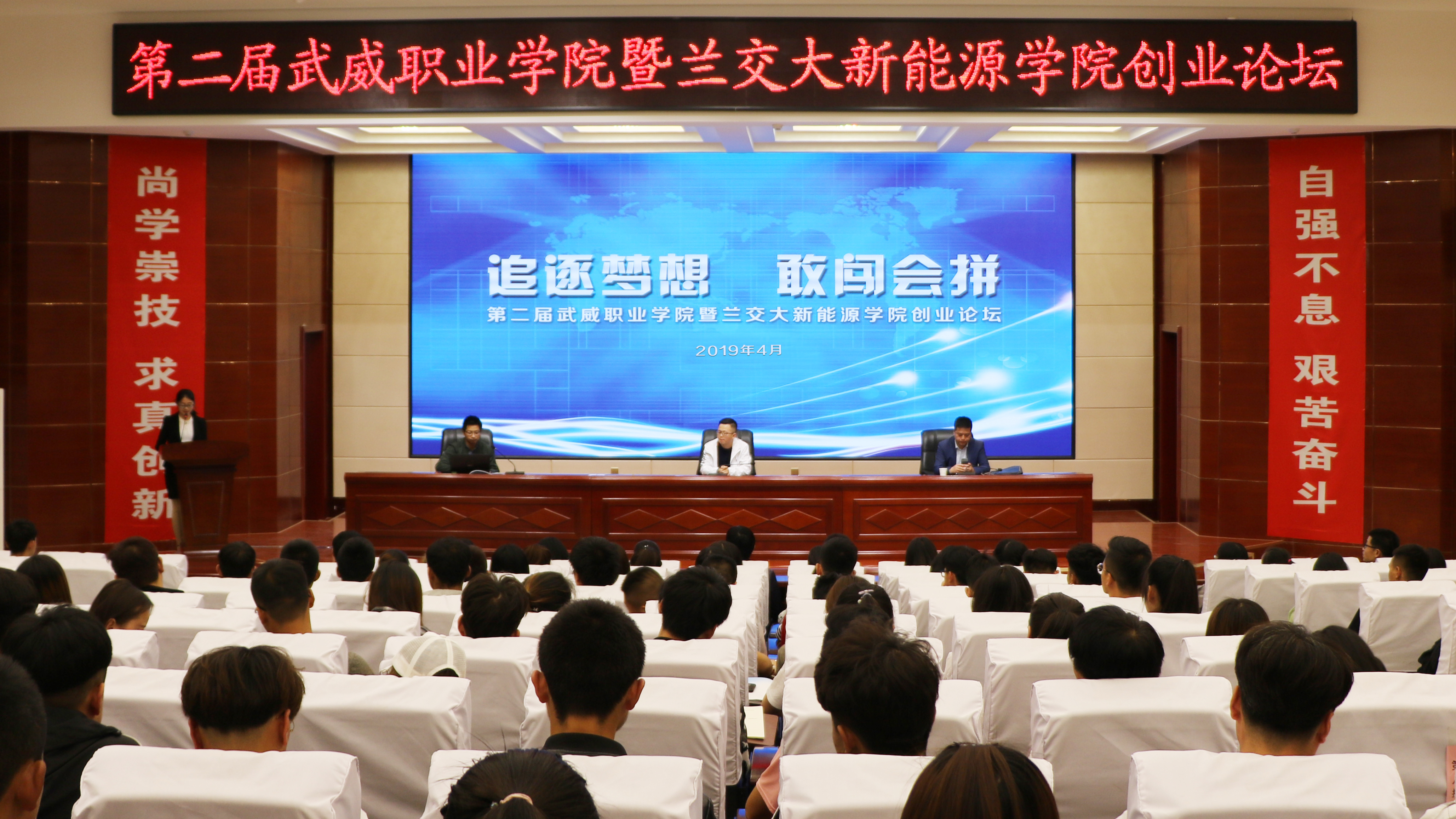 4月25日,雙創(chuàng)中心、院團(tuán)委在菁英廳舉辦第二屆武威職業(yè)學(xué)院暨蘭州交通大學(xué)新能源學(xué)院創(chuàng)業(yè)論壇,論壇旨在進(jìn)一步推動(dòng)學(xué)校“大眾創(chuàng)業(yè)、萬(wàn)眾創(chuàng)新”工作,解析大學(xué)生創(chuàng)新創(chuàng)業(yè)相關(guān)政策,分享創(chuàng)業(yè)歷程,加強(qiáng)創(chuàng)新創(chuàng)業(yè)教育,鼓勵(lì)引導(dǎo)大學(xué)生開(kāi)展創(chuàng)業(yè)實(shí)踐,提升創(chuàng)新創(chuàng)業(yè)服務(wù)水平,促進(jìn)我院大學(xué)生創(chuàng)新創(chuàng)業(yè)教育的深入開(kāi)展。