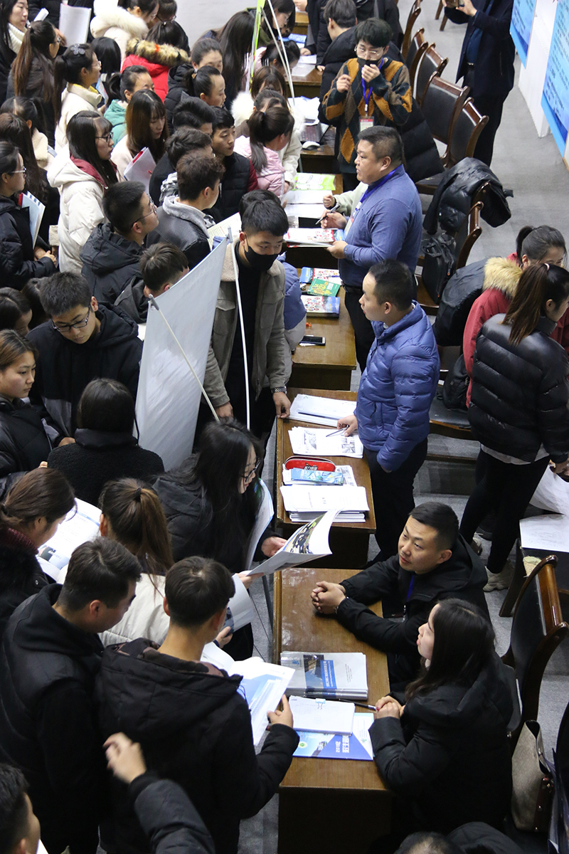 此次招聘會,有118家企業(yè)到場參會,參加招聘的企業(yè)涵蓋教育培訓(xùn)、機械機電、能源化工、藝術(shù)設(shè)計、建筑房地產(chǎn)、商品貿(mào)易、金融證券、信息技術(shù)、文化服務(wù)等類別,共計提供崗位2100多個。招聘會秩序井然、人頭攢動。畢業(yè)生們手持簡歷和就業(yè)三方協(xié)議穿梭于各招聘展位與招聘單位交流,招聘單位不遺余力向畢業(yè)生們積極推介。招聘會結(jié)束后,招聘單位在各系進行了深入宣講和面試。學(xué)院2020屆畢業(yè)生共有3329名,除了醫(yī)藥衛(wèi)生類畢業(yè)生尚在實習(xí)環(huán)節(jié)外,其余學(xué)生均參加了招聘“雙選”。經(jīng)初步統(tǒng)計,此次招聘會達成了就業(yè)意向1200多名,有623人在招聘會現(xiàn)場簽訂了就業(yè)三方協(xié)議。