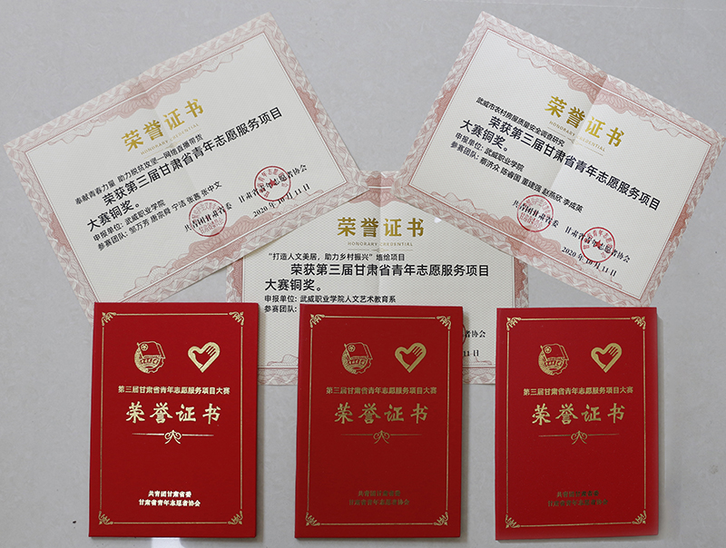 本次大賽共收到全省各市州團委、高校、公益機構、企業(yè)團委和社會組織申報的作品315個,經過專家評審,共有170個項目入圍參加決賽,通過現(xiàn)場PPT路演、答辯等環(huán)節(jié),我院人文藝術教育系申報的《“打造人文美居,助力鄉(xiāng)村振興”墻繪服務隊》、電子信息工程系申報的《奉獻青春力量 助力脫貧攻堅—網(wǎng)絡直播帶貨》、建筑工程系申報的《武威市農村房屋質量調查研究》三個項目獲得銅獎。