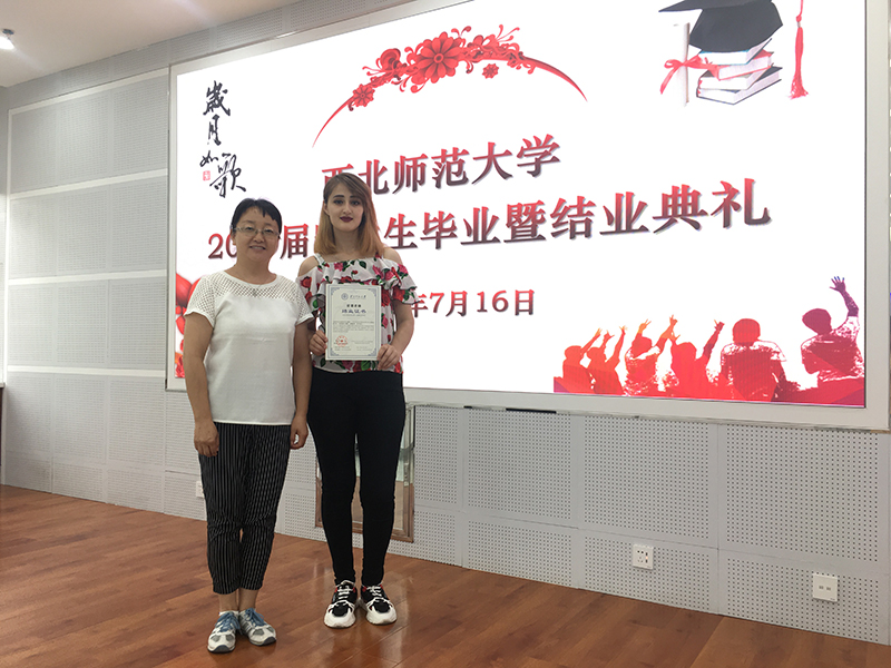 畢業(yè)典禮在留學(xué)生視頻播放中開始,視頻內(nèi)容真實(shí),情真意切,如實(shí)記錄了留學(xué)生在華學(xué)習(xí)、生活的點(diǎn)點(diǎn)滴滴,展示了“一帶一路”合作倡議下教育對外開放的成果。西北師范大學(xué)國際文化交流學(xué)院書記李東海宣讀結(jié)業(yè)生名單,我院19級5名留學(xué)生赫然在列。西北師范大學(xué)國際合作與交流處處長王君朝向留學(xué)生祝詞,對留學(xué)生經(jīng)過努力學(xué)習(xí)、順利畢業(yè)表示衷心祝賀。留學(xué)生代表用流利漢語發(fā)言,既反映了漢語學(xué)習(xí)的效果,也表達(dá)了對漢語學(xué)習(xí)生活的留戀,對學(xué)校培育的感激,對中國政府和中國人民對外友好的真心感謝。留學(xué)生在激動喜悅的心情中領(lǐng)取了結(jié)業(yè)證書及紀(jì)念品。