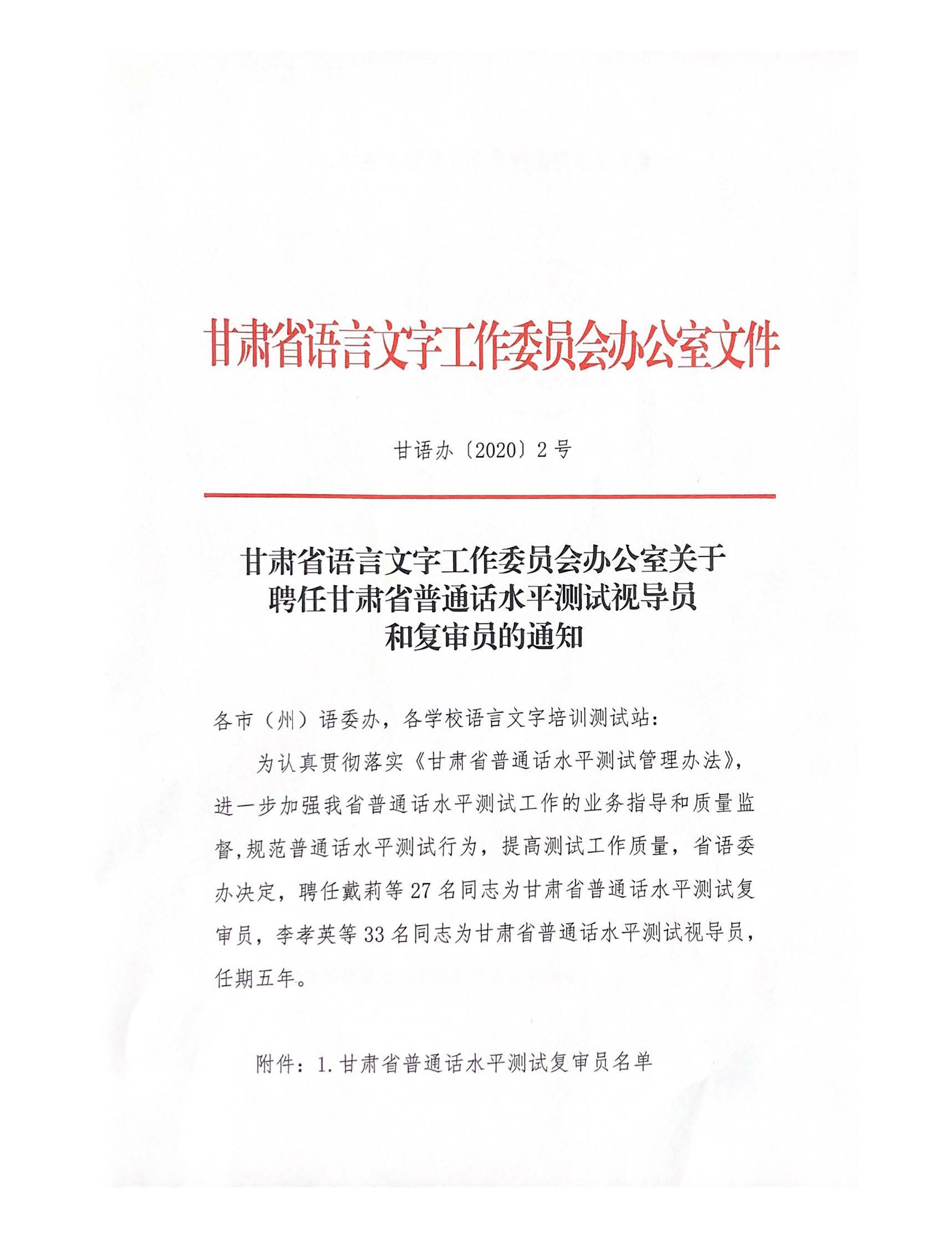 6月24日,我院護(hù)理系教師趙穎教授獲得甘肅省普通話水平測試復(fù)審員資格。根據(jù)《甘肅省語言文字工作委員會(huì)辦公室關(guān)于聘任甘肅省普通話水平測試視導(dǎo)員和復(fù)審員的通知》評選條件,學(xué)院組織推薦趙穎老師為“甘肅省普通話水平測試復(fù)審員”。經(jīng)甘肅省語言文字工作委員會(huì)評審,趙穎老師獲得甘肅省普通話水平測試復(fù)審員”資格,這是我院語言文字工作方面產(chǎn)生的第一位“省級測試復(fù)審員”。