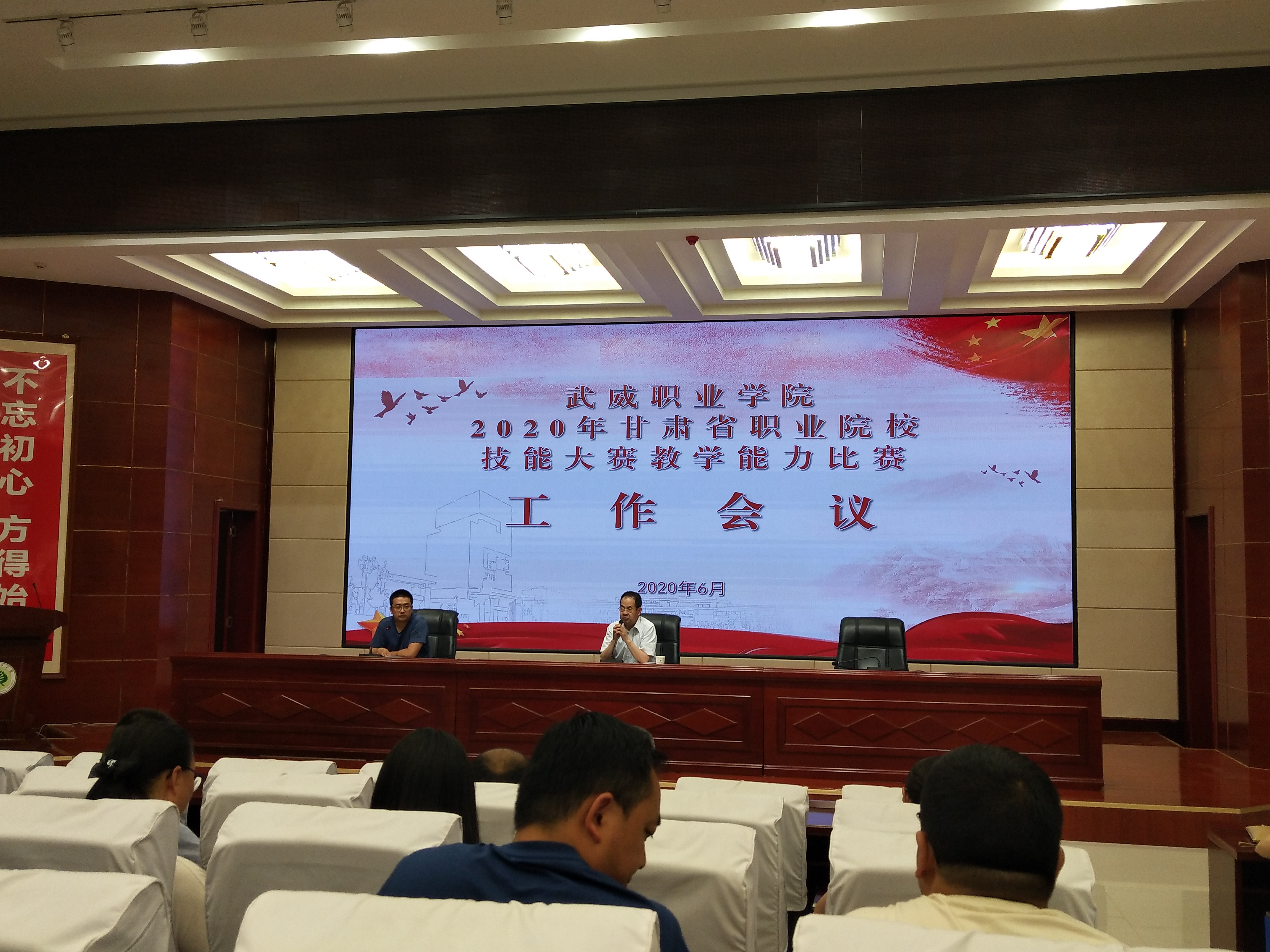 為做好學(xué)院教師參加2020年甘肅省職業(yè)院校技能大賽教學(xué)能力比賽相關(guān)工作,力爭(zhēng)學(xué)院在2020年的各級(jí)各類大賽中取得更加優(yōu)異成績(jī),學(xué)院于6月18日組織召開(kāi)2020年甘肅省職業(yè)院校技能大賽教學(xué)能力比賽工作會(huì)議。各參賽團(tuán)隊(duì)成員、參賽隊(duì)指導(dǎo)小組成員,相關(guān)部門(mén)、教學(xué)系負(fù)責(zé)人及教務(wù)處負(fù)責(zé)人參加了會(huì)議。會(huì)議由學(xué)院黨委副書(shū)記翟存祥主持。