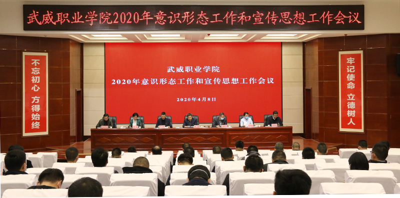 會議要求,2020年,學(xué)院宣傳思想工作要堅(jiān)持以習(xí)近平新時代中國特色社會主義思想為指導(dǎo),全面貫徹黨的教育方針,落實(shí)“立德樹人”根本任務(wù),全面貫徹落實(shí)全國全省教育大會精神、宣傳部長會議精神,自覺承擔(dān)起“舉旗幟、聚民心、育新人、興文化、展形象”的使命任務(wù),嚴(yán)格履行意識形態(tài)工作責(zé)任制。持續(xù)開展“時代楷?!卑瞬缴沉謭觥傲蠞h”三代人治沙造林先進(jìn)群體事跡宣傳,大力弘揚(yáng)新時代武威精神。聚焦決勝全面建成小康社會、決戰(zhàn)脫貧攻堅(jiān),著力推動習(xí)近平新時代中國特色社會主義思想深入人心。著力培育和弘揚(yáng)社會主義核心價值觀,著力加強(qiáng)輿論引導(dǎo)和輿論斗爭,著力鞏固壯大主流意識形態(tài),著力推進(jìn)文明校園創(chuàng)建助力武威市創(chuàng)建全國文明城市,為實(shí)現(xiàn)全面建成小康社會和學(xué)院高質(zhì)量發(fā)展提供堅(jiān)強(qiáng)思想保證和強(qiáng)大精神動力。