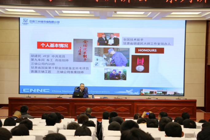 報(bào)告會(huì)上,胡建民大師首先向師生介紹了蘭鈾公司的光輝歷程、歷史貢獻(xiàn)、公司概況,然后圍繞個(gè)人成長(zhǎng)經(jīng)歷、學(xué)習(xí)交流工作培訓(xùn)、工作室工作方向三個(gè)方面深入淺出地講述了自己的工匠之路,為同學(xué)們?cè)趯I(yè)技能、就業(yè)指導(dǎo)、職業(yè)素養(yǎng)等方面分享了自己的生活、工作經(jīng)驗(yàn),師生們獲益良多。