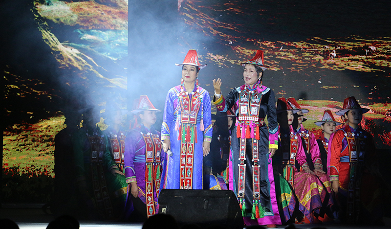 原創(chuàng)合唱音詩《薩娜瑪珂》取材于甘肅省獨有的少數(shù)民族裕固族的同名史詩,以裕固族民族女英雄為人物形象,以裕固族民族音樂為音樂基調,以感人至深的故事情節(jié)為創(chuàng)意線索,全劇采用四部合唱、女高音領唱、男中音領唱以及朗誦等富有獨特表現(xiàn)力的藝術形式,生動再現(xiàn)了薩娜瑪珂的壯美人生和傳奇故事。原生態(tài)的民族音樂、如詩如畫的舞美、濃郁的民族風情,深深地感染了現(xiàn)場師生,贏得了陣陣熱烈的掌聲。