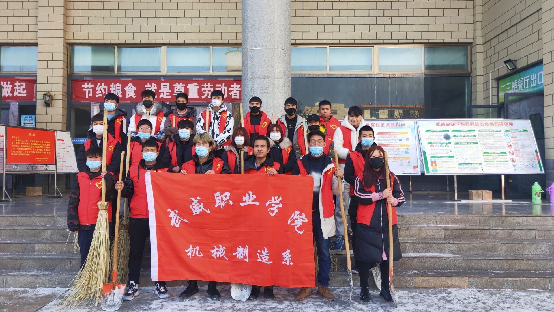 臨近寒冬,一場大雪飄飄灑灑的飄落下來,教學樓附近的主干道路面嚴重積雪和冰凍,存在著極大的安全隱患。為保障道路暢通,確保師生安全,2020年12月2日上午,機械制造系團學干部以及志愿者開展了志愿鏟雪活動。