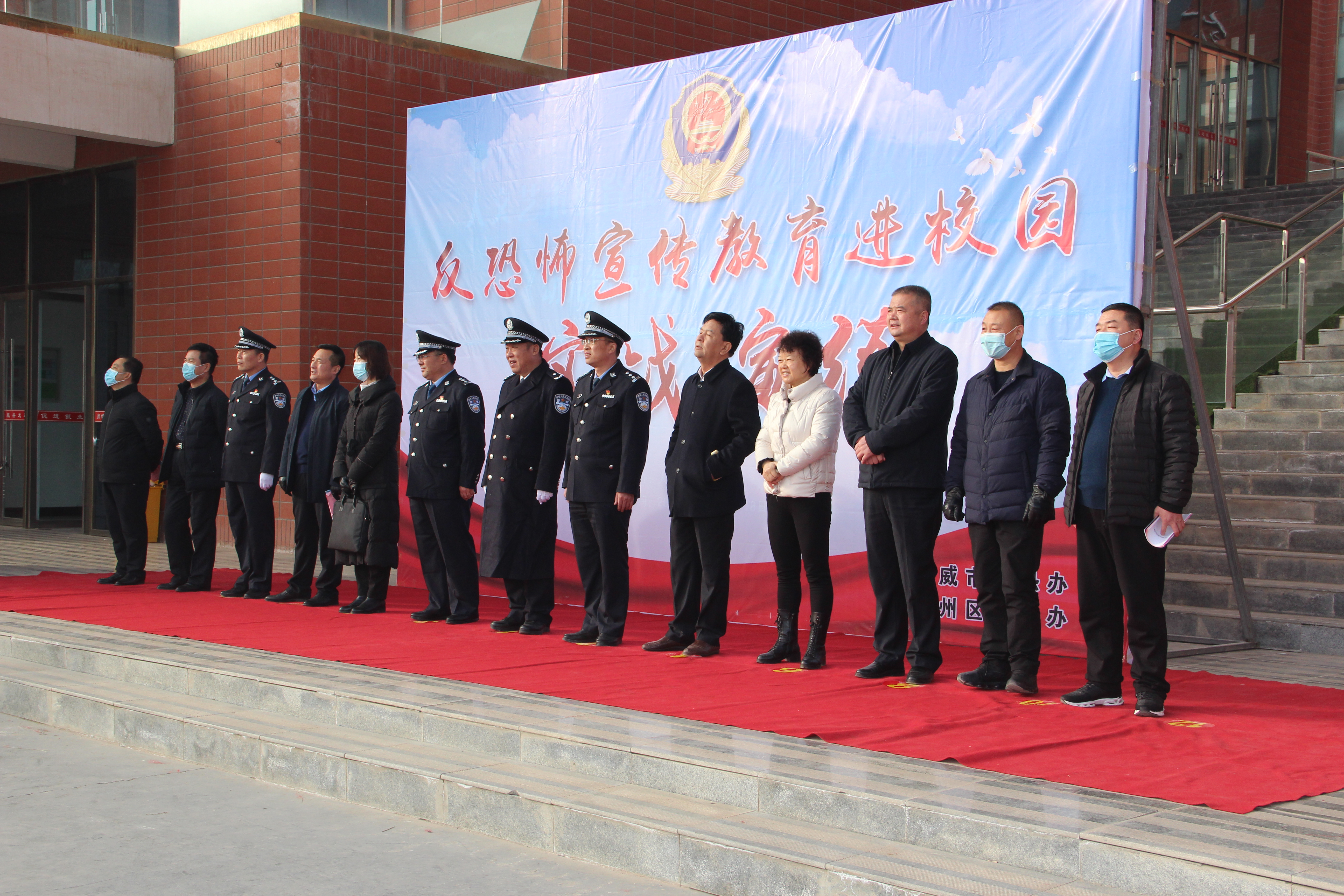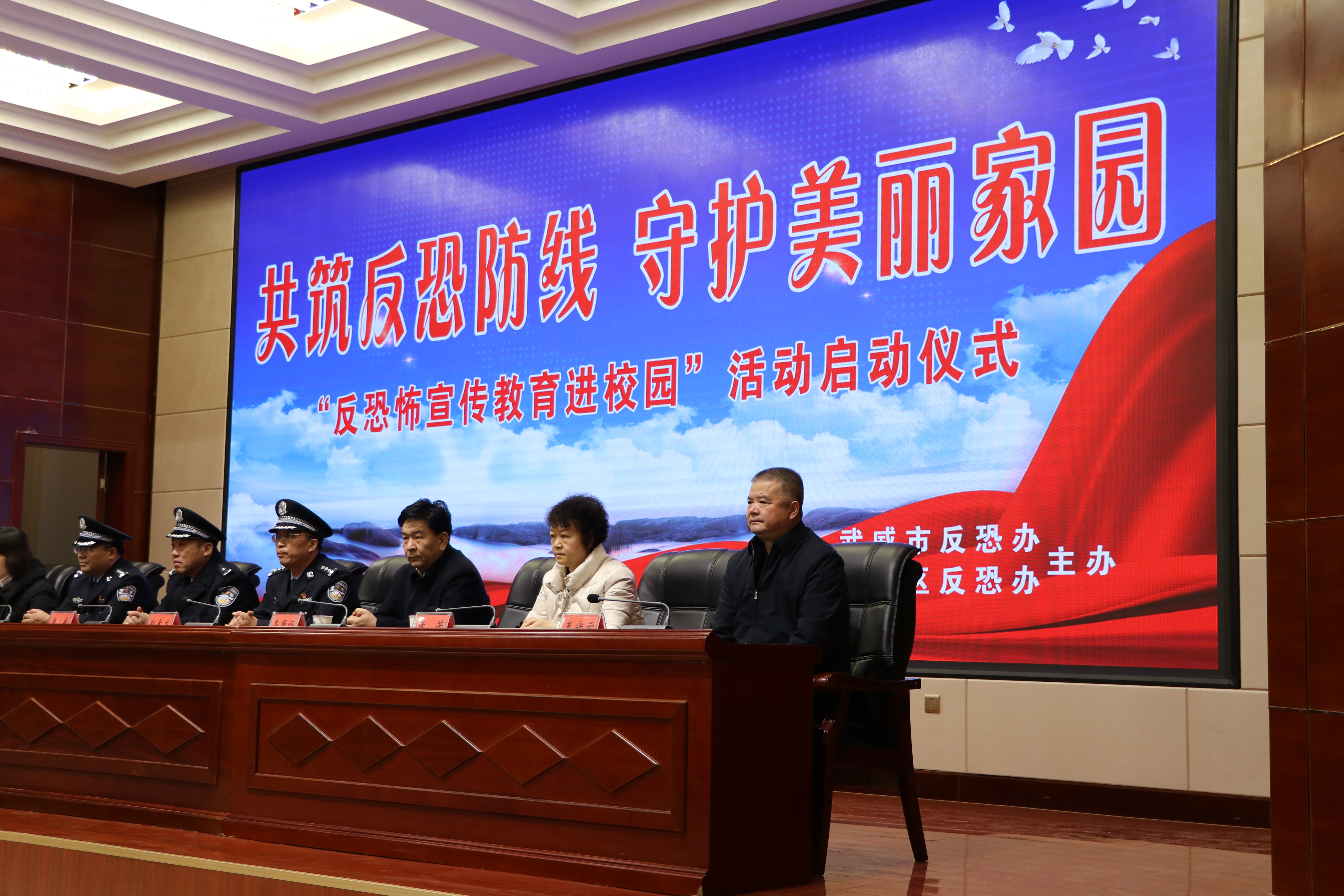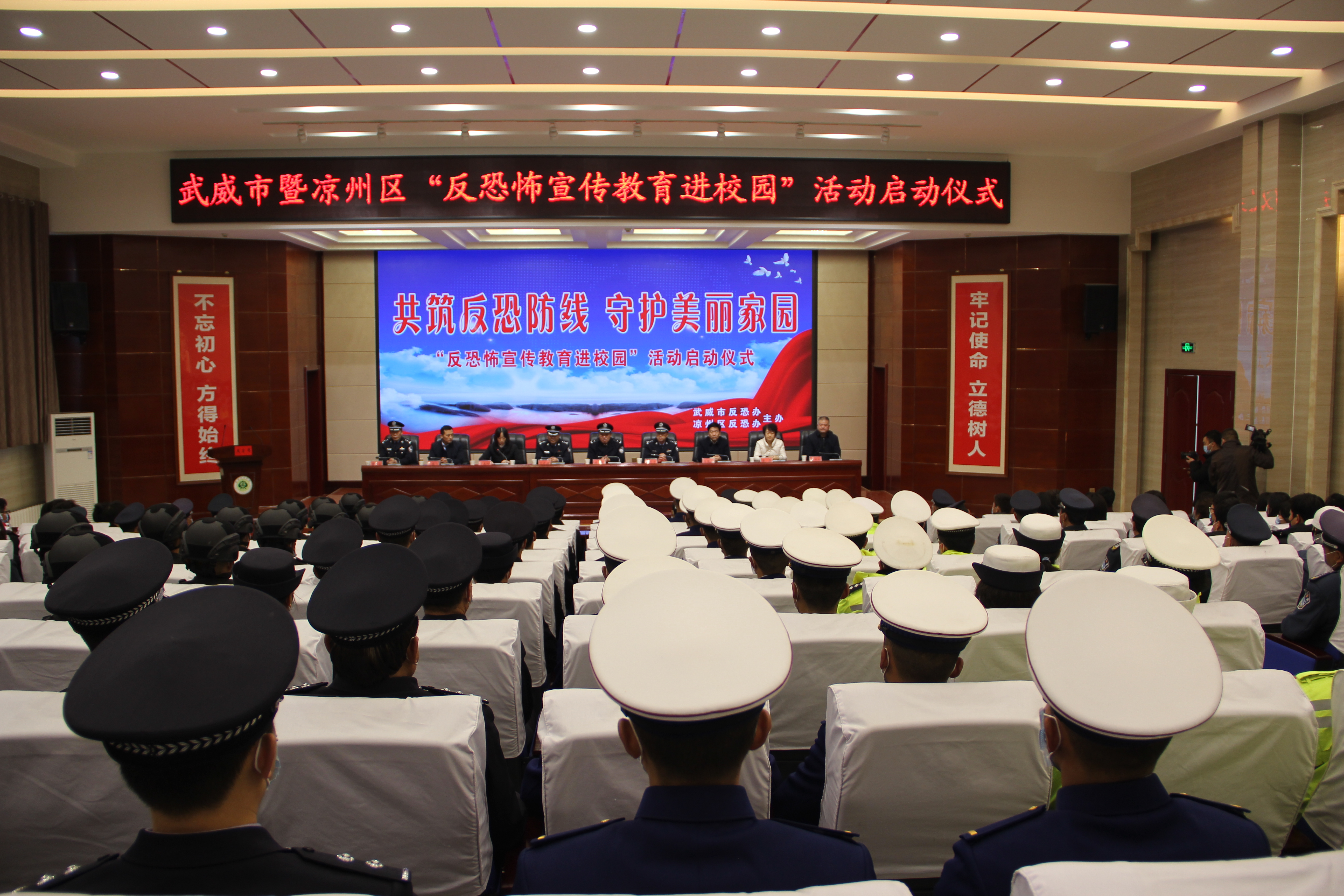 啟動(dòng)儀式在雄壯的國(guó)歌聲中開(kāi)始。武威市反恐怖辦主任、市公安局常務(wù)副局長(zhǎng)康威同志致辭并宣布“反恐怖宣傳教育進(jìn)校園”活動(dòng)啟動(dòng);市教育局副局長(zhǎng)賈玉玲同志代表全市教育系統(tǒng)作了講話;學(xué)院學(xué)生代表王昊宣讀了倡議書(shū)。