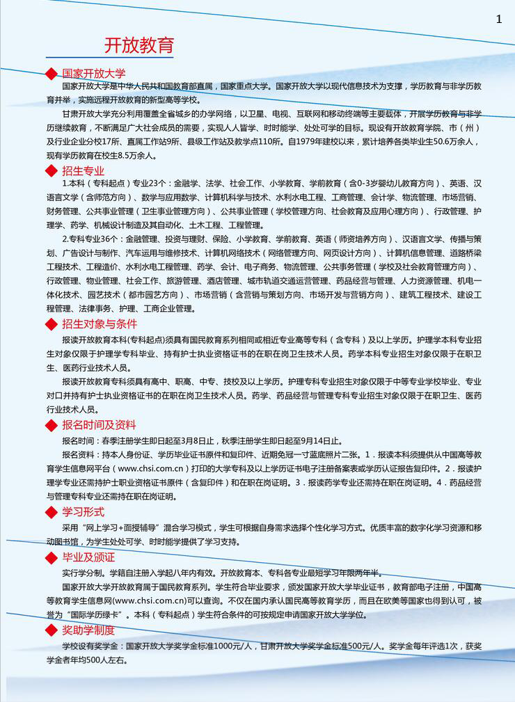 武威職業(yè)學(xué)院繼續(xù)教育學(xué)院2020年招生簡章