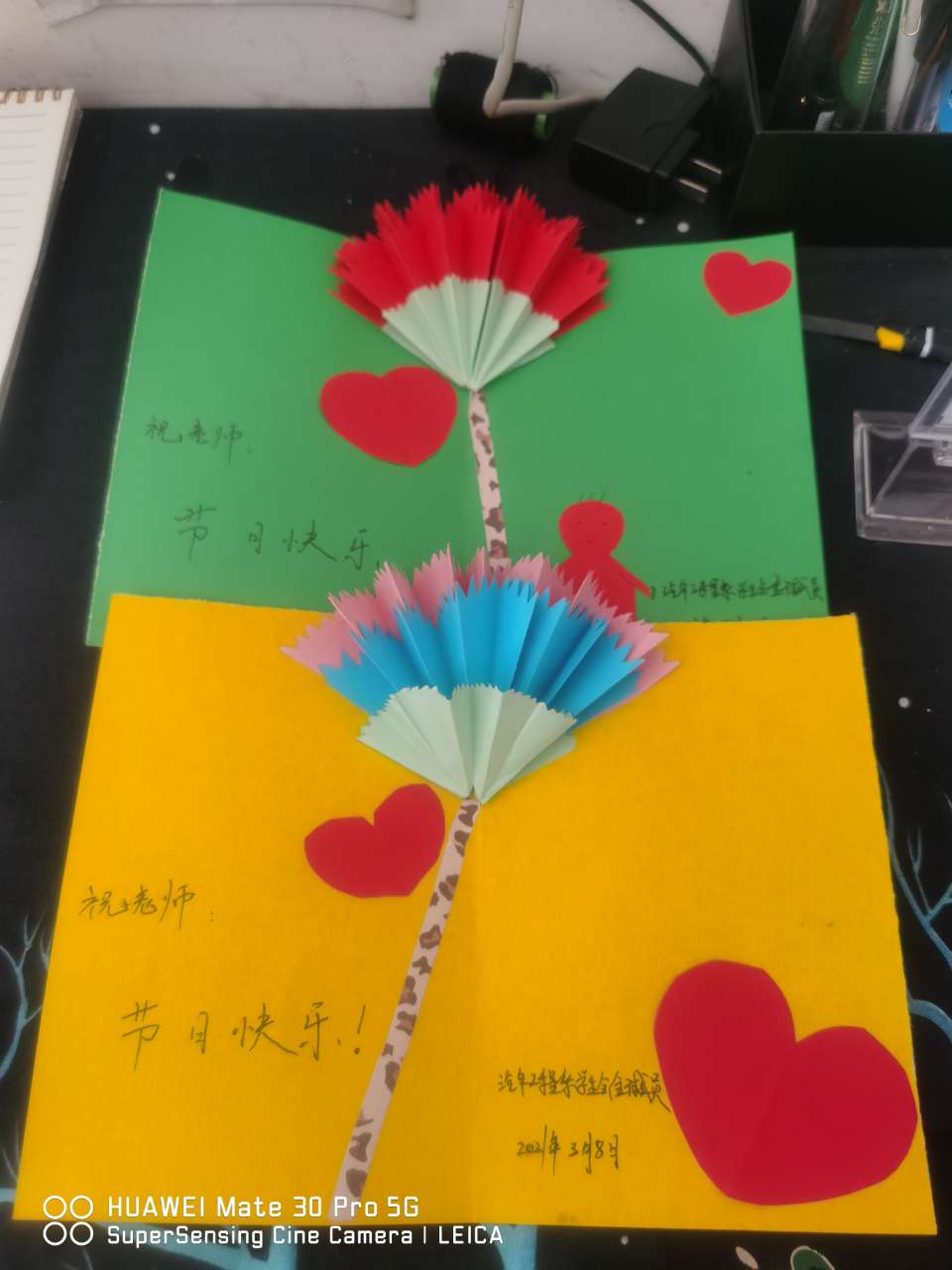 ? 3月8日上午,利用課間休息時(shí)間,汽車(chē)工程系學(xué)生通過(guò)贈(zèng)送自制小賀卡、每人一句祝福語(yǔ)等形式為女教師們獻(xiàn)上了節(jié)日的祝福。