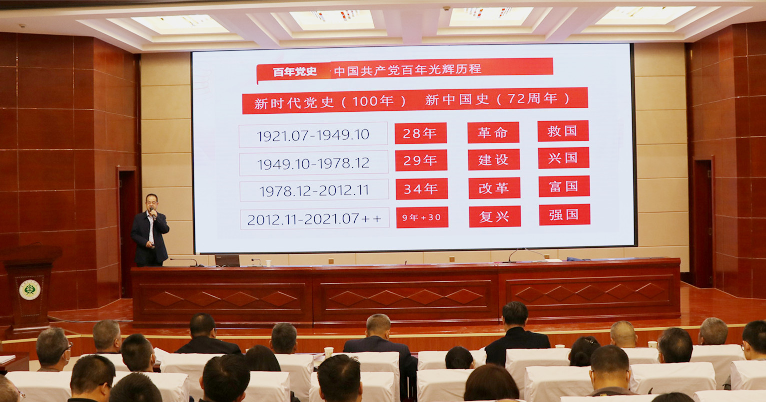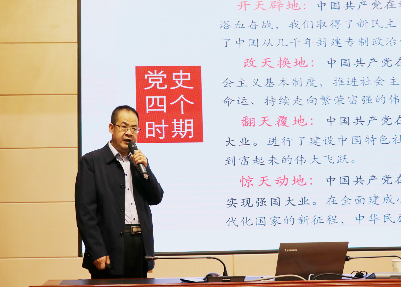 報告中,翟存祥教授帶領大家再次學習了習近平總書記在黨史學習教育動員大會上的講話,進一步明確了開展黨史學習教育的重大意義。報告將中國共產(chǎn)黨百年歷程分為“開天辟地,新民主主義革命時期;改天換地,社會主義革命和建設時期;翻天覆地,改革開放和現(xiàn)代化建設時期;驚天動地,中國特色社會主義新時代”四個歷史發(fā)展階段。從只有中國共產(chǎn)黨才能拯救中國,中國人民站起來了;只有中國共產(chǎn)黨才能發(fā)展中國,中國人民富起來了;只有中國共產(chǎn)黨才能治理中國,中國人民強起來了;堅持中國共產(chǎn)黨的全面領導,新中國取得巨大成就等四個方面深刻闡述了中國共產(chǎn)黨百年奮斗的光輝歷程和取得的偉大成就,系統(tǒng)梳理總結(jié)了黨帶領人民推進革命、建設、改革的寶貴經(jīng)驗和長期奮斗中鑄就的偉大精神。
