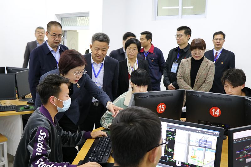學(xué)院黨委書記、院長(zhǎng)趙明向王海燕一行詳細(xì)匯報(bào)了學(xué)院基本情況、黨史學(xué)習(xí)教育、技能甘肅、“雙高計(jì)劃”項(xiàng)目建設(shè)、人才培養(yǎng)、師資隊(duì)伍建設(shè)、招生就業(yè)、校企合作、“1+X”證書試點(diǎn)、技能大賽、課程思政改革等情況,重點(diǎn)對(duì)與中科院上海應(yīng)用物理研究所聯(lián)合舉辦中科低碳新能源技術(shù)學(xué)院情況進(jìn)行了匯報(bào)。王海燕一行實(shí)地查看了中科低碳新能源技術(shù)學(xué)院實(shí)驗(yàn)實(shí)訓(xùn)室,并對(duì)積極備戰(zhàn)國(guó)賽的師生給予鼓勵(lì)。