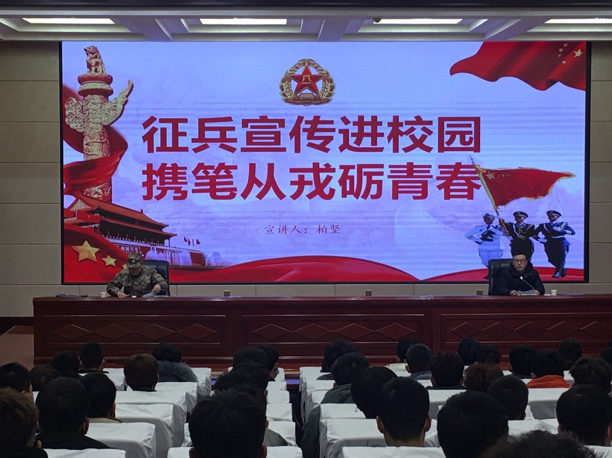為支持國防建設(shè),鼓勵大學生參軍入伍保家衛(wèi)國,學院于12月30日下午在菁英廳舉辦2021年春季大學生征兵入伍政策宣講會。活動邀請了涼州區(qū)人民武裝部政治工作科科長柏堅進行宣講,學院200余名師生參加了宣講會。學生工作處負責人高鵬堂主持會議。