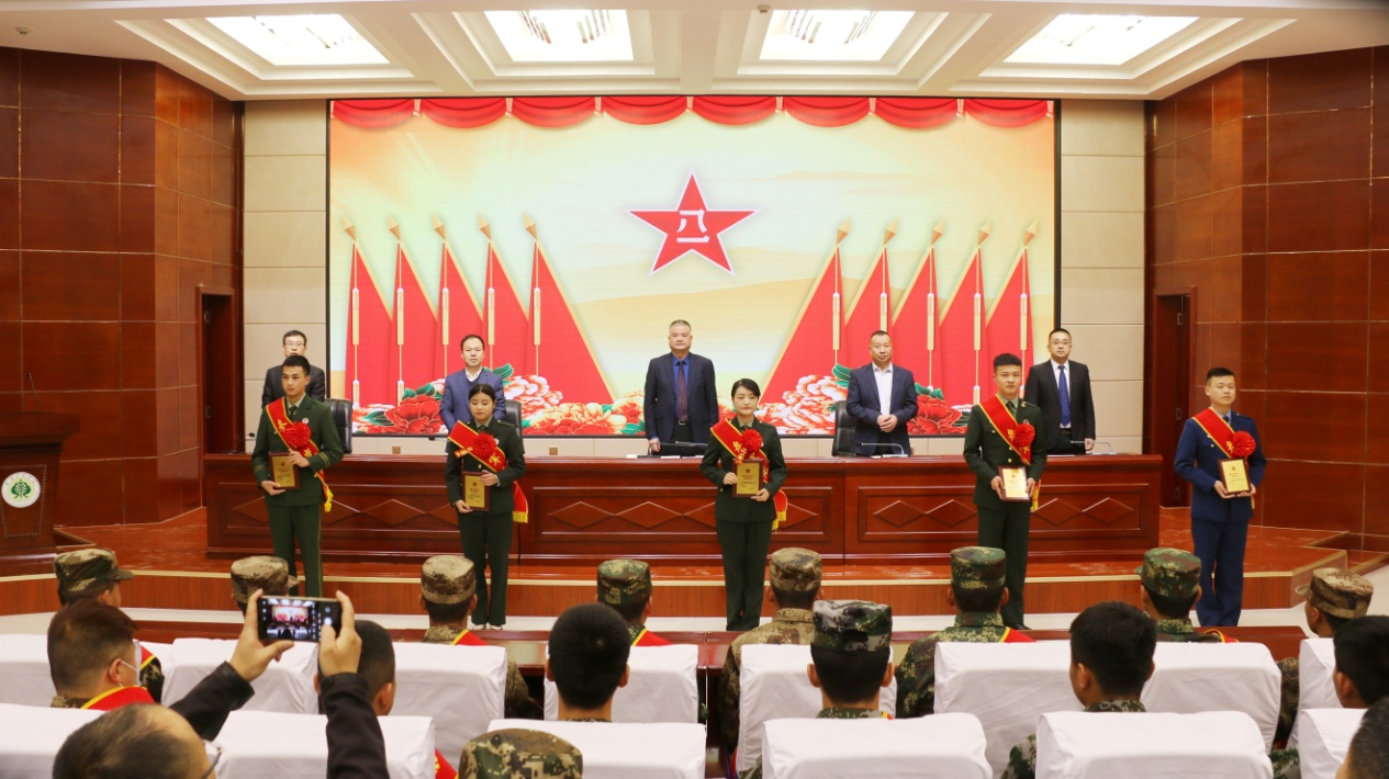 大會(huì)上,高鵬堂宣讀了2021年春季入伍學(xué)生名單和近兩年退役復(fù)學(xué)學(xué)生名單;參會(huì)領(lǐng)導(dǎo)為應(yīng)征入伍的12名新兵佩戴紅花,贈(zèng)送紀(jì)念品,為退役復(fù)學(xué)學(xué)生代表佩戴紅花,頒發(fā)榮譽(yù)證書(shū)。
