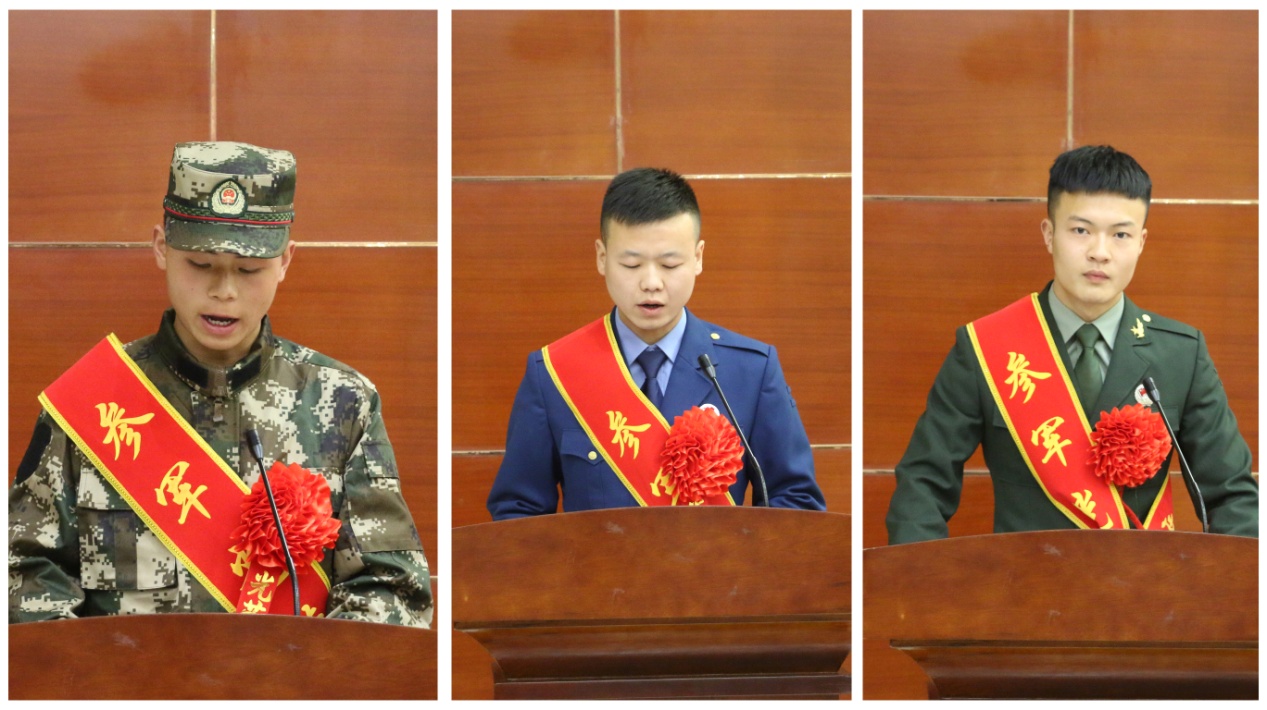 機(jī)械制造系學(xué)生張進(jìn)和電子信息工程系學(xué)生藺煜明分別代表2019年、2020年退役復(fù)學(xué)學(xué)生發(fā)言,他們講述了自己的從軍經(jīng)歷和退伍感想,表達(dá)了“退役不退志、退伍不褪色”的學(xué)習(xí)生活態(tài)度,并向新入伍的同學(xué)們送去了真誠(chéng)的祝福。