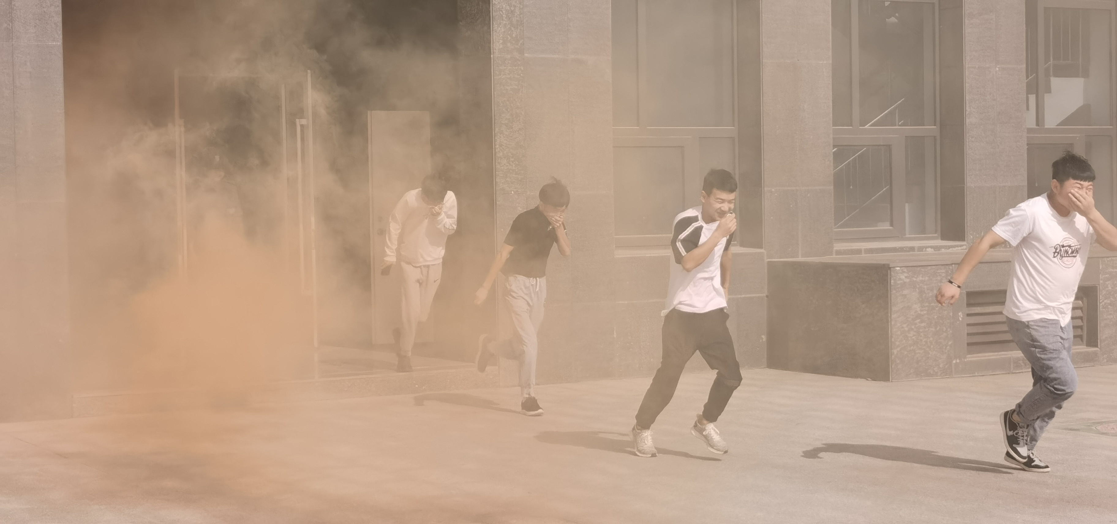 下午4點46分,疏散演練正式開始。隨著消防警報響起,各教學班上課教師立即停止上課組織學生疏散,學生用濕毛巾捂住口鼻,按照逃生路線有序疏散。在5分鐘內(nèi),8000多名參演師生全部撤離到安全地帶,演練取得圓滿成功。