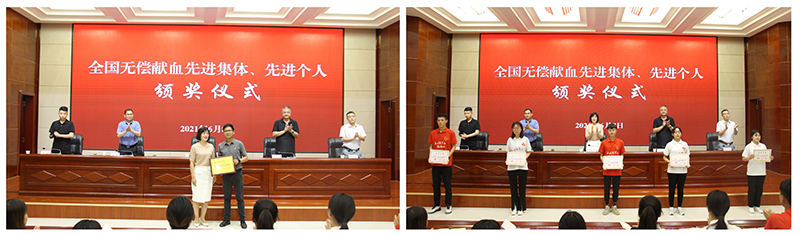 儀式上,與會領導為武威市2018-2019年度全國無償獻血先進集體和個人獲得者頒獎。我院被評為全國無償獻血促進獎單位獎,有13名師生榮獲全國無償獻血志愿服務獎。