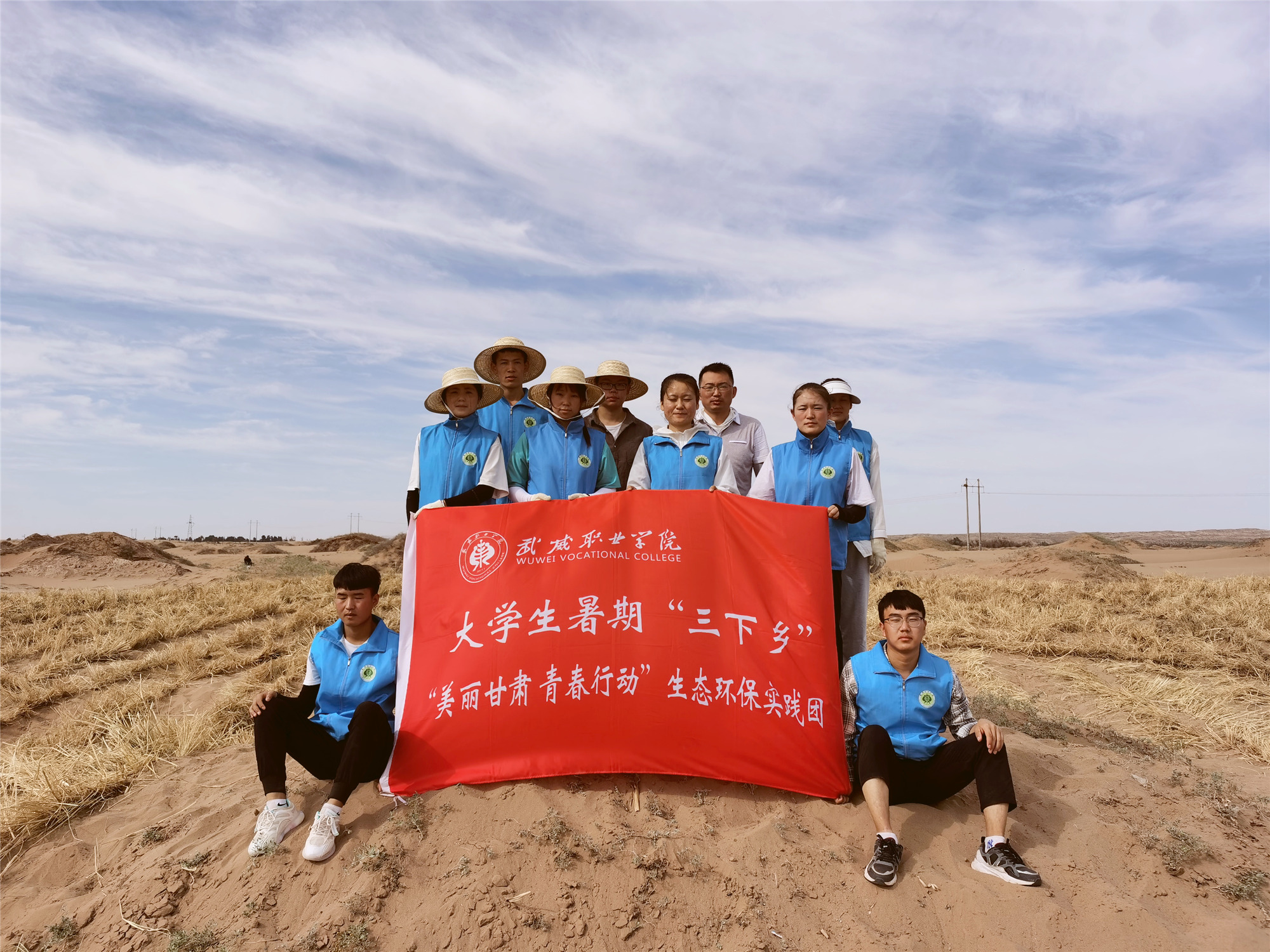 為深入學(xué)習(xí)貫徹習(xí)近平總書(shū)記生態(tài)文明建設(shè)重要戰(zhàn)略思想,引導(dǎo)和幫助學(xué)院青年學(xué)生積極融入武威市創(chuàng)建文明城市,以實(shí)際行動(dòng)致力于荒漠化治理、踐行兩山理論。2021年7月15日至21日,在武威職業(yè)學(xué)院團(tuán)委、教學(xué)院系指導(dǎo)下,來(lái)自7個(gè)專業(yè)、1名留學(xué)生所組成的“美麗甘肅 青春行動(dòng)”青少年生態(tài)環(huán)保行動(dòng)暑期社會(huì)實(shí)踐小隊(duì)奔赴武威市三縣一區(qū)部分地區(qū)進(jìn)行“綠色夢(mèng)想·戈壁荒漠‘智’富行動(dòng)”暑期社會(huì)實(shí)踐。