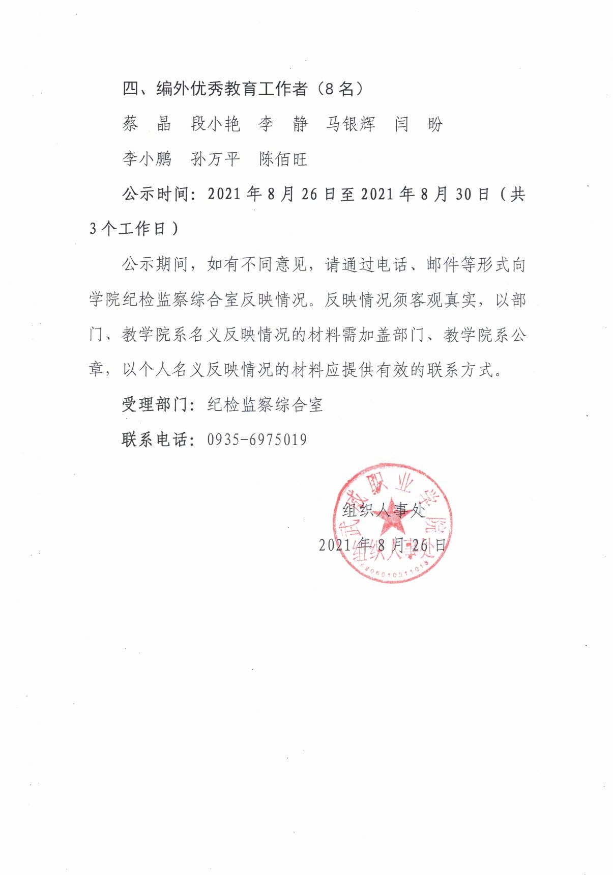 關(guān)于對2021年甘肅省“園丁獎(jiǎng)”、武威市教育工作先進(jìn)個(gè)人評選對象推薦結(jié)果…