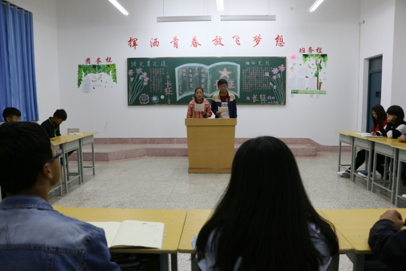 在這次主題活動中,能源系各班積極參加,展示了別具一格的班級風(fēng)采,在本班團支部書記的組織下,開展了豐富多彩的活動。特別是16級光伏班,團支部書記朱奇前致開幕詞: 80周年的今天,長征途中那驚天動地傳神的英雄壯舉,仿佛就在眼前那隆隆的炮聲。震天的吶喊,仿佛就在耳邊,成為我們成長進步的無窮動力。接下來,各班召開了主題班會。以紀念紅軍長征勝利80 周年,緬懷紅軍創(chuàng)建的豐功偉績,追思和弘揚長征精神,爭做文明誠信小公民。在這濃厚的氛圍中,我們被深深感動著,他雖然離我們漸漸遙遠,但我們不能忘卻這段歷史。我們紀念紅軍長征勝利,就是要重溫長征精神,牢記長征精神,弘揚長征精神。把長征精神一代一代傳下去,讓長征精神永放光芒。