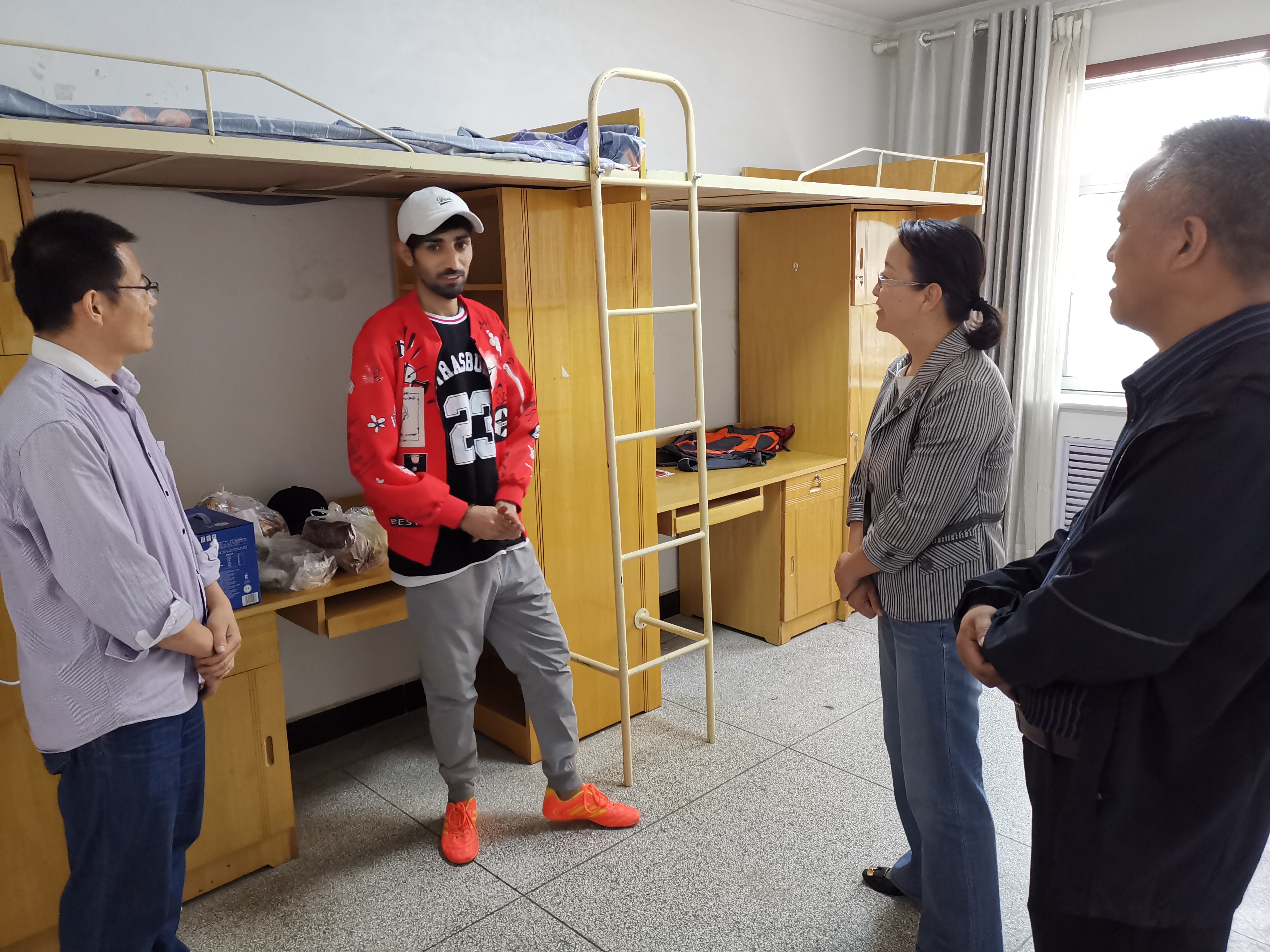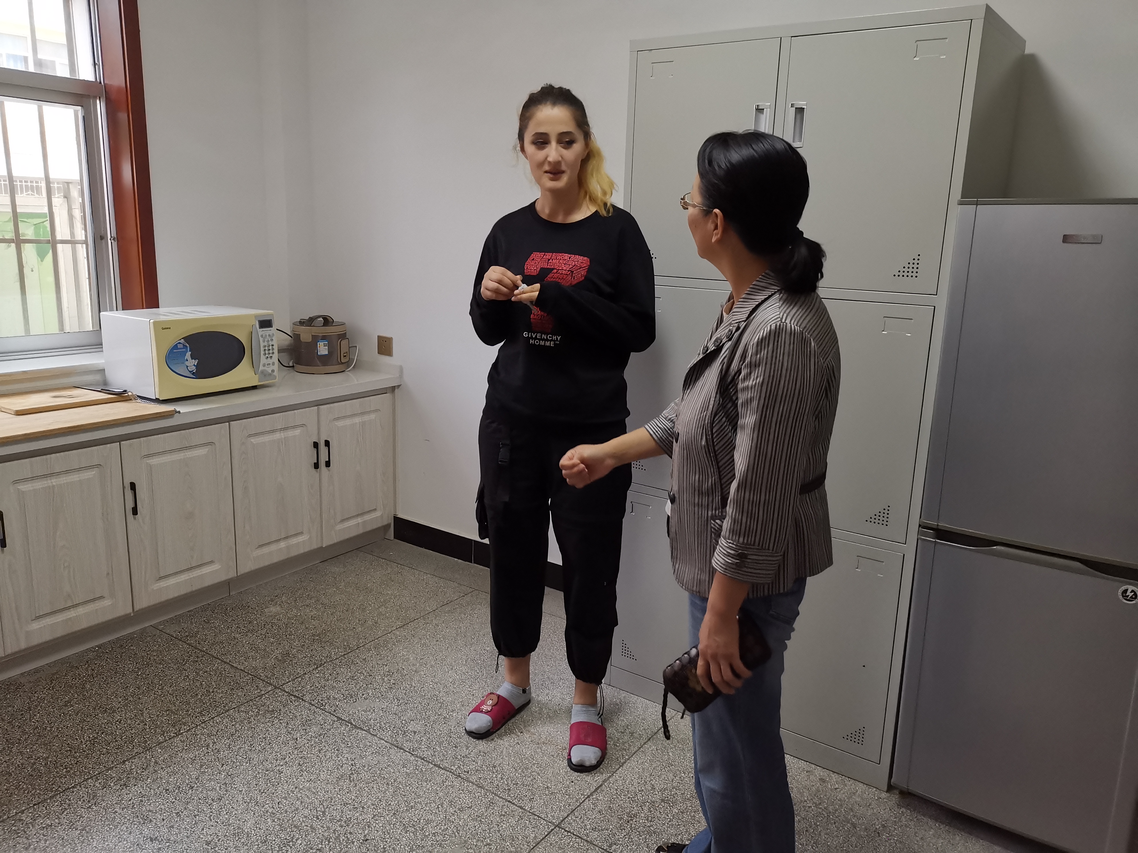田迎春先后深入2019級、2021級來華留學(xué)生宿舍、廚房,查看、了解留學(xué)生住宿、生活情況,向留學(xué)生送上慰問品。在留學(xué)生宿舍,田迎春與留學(xué)生親切交談,關(guān)切詢問留學(xué)生日常生活、專業(yè)學(xué)習(xí)、漢語學(xué)習(xí)等情況。她向留學(xué)生簡要介紹了中秋節(jié)、國慶節(jié)的來歷、風(fēng)俗及意義,留學(xué)生們對中國傳統(tǒng)文化表現(xiàn)出濃厚興趣;她指出,留學(xué)生背井離鄉(xiāng)來華求學(xué),遇到困難在所難免,但要堅定信心,學(xué)院會盡力滿足留學(xué)生學(xué)習(xí)、生活的需要;她鼓勵留學(xué)生積極主動融入學(xué)院大家庭,廣交朋友,在融入、融合過程中體會在華學(xué)習(xí)生活的樂趣;她希望留學(xué)生珍惜寶貴的來華學(xué)習(xí)的機會,不僅要學(xué)好理論知識,而且要學(xué)好操作技能,不僅要學(xué)好專業(yè)知識,而且要學(xué)好優(yōu)秀中華文化,講好中國故事,向世界展示真實的中國,爭做知華友華愛華的留學(xué)生,爭做中國與世界各國友好的使者。