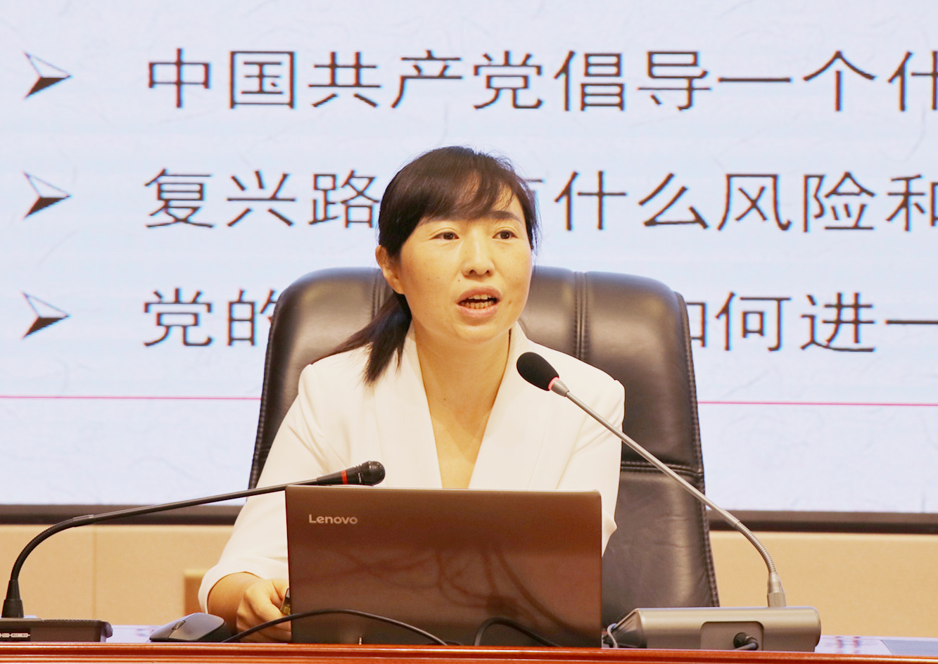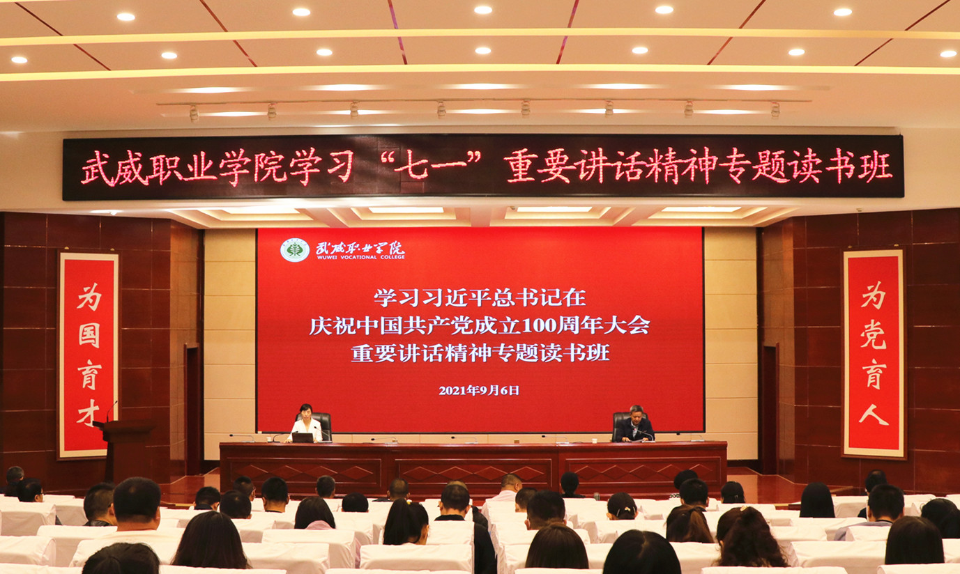讀書(shū)班邀請(qǐng)市委黨史宣傳團(tuán)成員、甘肅畜牧工程職業(yè)技術(shù)學(xué)院副教授羅海燕同志作專(zhuān)題輔導(dǎo)報(bào)告。羅海燕同志從深刻把握習(xí)近平總書(shū)記“七一”重要講話的重大意義、深刻把握習(xí)近平總書(shū)記“七一”重要講話的豐富內(nèi)涵、學(xué)習(xí)貫徹落實(shí)“七一”講話精神三個(gè)方面,對(duì)習(xí)近平總書(shū)記在慶祝中國(guó)共產(chǎn)黨成立100周年大會(huì)上的重要講話進(jìn)行了解讀,報(bào)告主題鮮明、內(nèi)涵豐富,給參加讀書(shū)班的黨員干部和師生作了一場(chǎng)精彩的專(zhuān)題輔導(dǎo)。