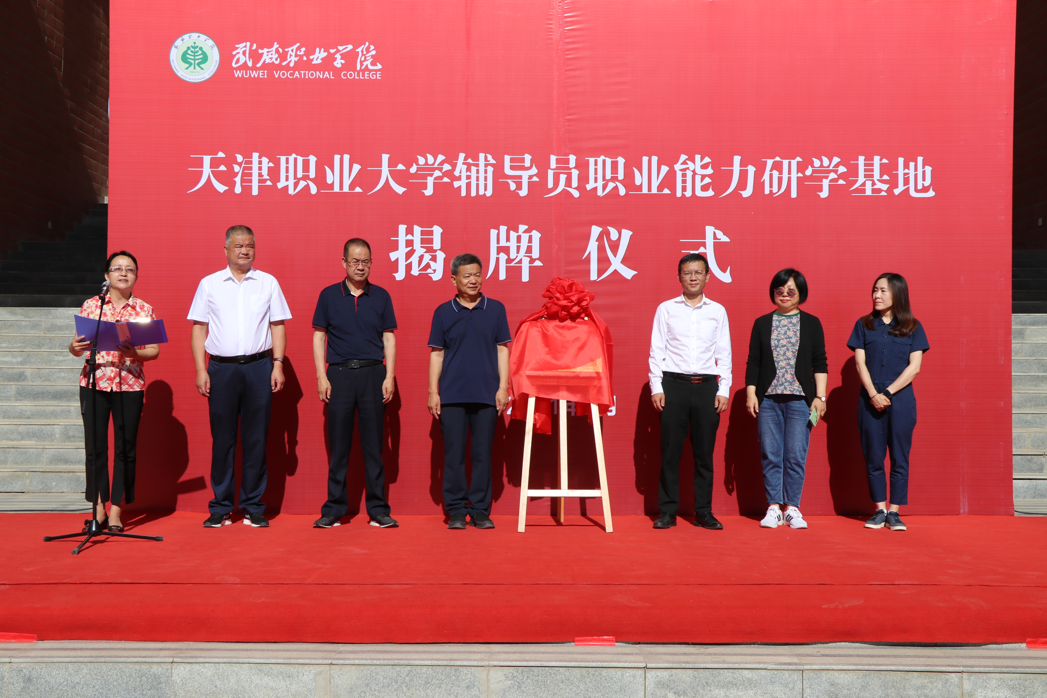參觀結(jié)束后,在學(xué)生發(fā)展中心門口舉行天津職業(yè)大學(xué)輔導(dǎo)員職業(yè)能力研學(xué)基地揭牌儀式。天津職業(yè)大學(xué)與我院簽訂了《天津職業(yè)大學(xué)輔導(dǎo)員職業(yè)能力研學(xué)基地共建協(xié)議》,并互贈紀(jì)念品。通過研學(xué)基地共建,雙方相互借鑒在輔導(dǎo)員隊伍建設(shè)培養(yǎng)、學(xué)校德育工作的理念和做法,推進(jìn)高校輔導(dǎo)員隊伍建設(shè),加強兩校間深度合作,不斷提升育人質(zhì)量,構(gòu)建新時代的高校德育工作格局。