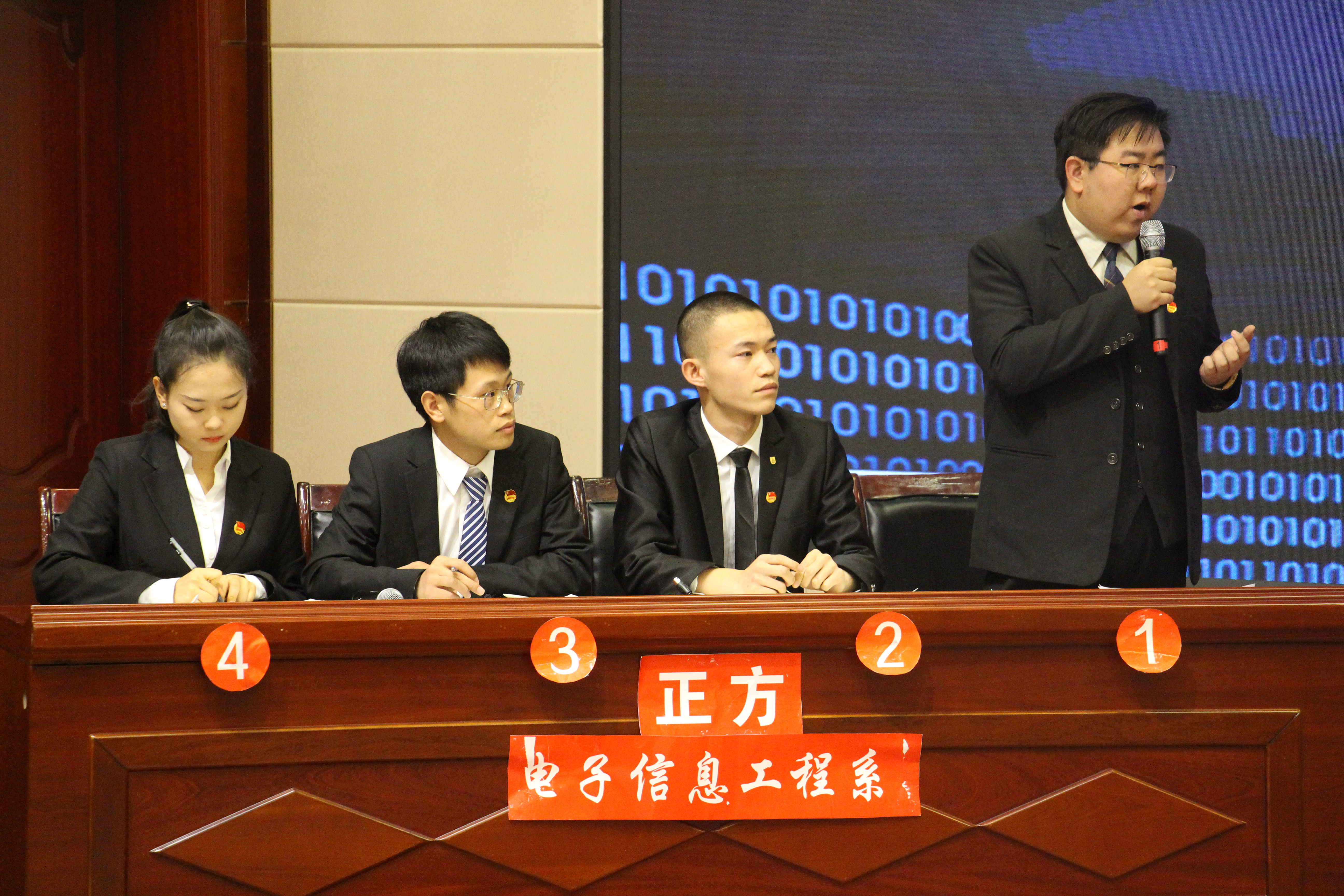 經(jīng)過11場次的比賽,電子信息工程系代表隊和藥學系代表隊進入最后決賽。決賽現(xiàn)場,正反雙方針對高素質(zhì)技術(shù)技能人才以“仁”還是以“智”為先拉開激烈交戰(zhàn)。雙方選手在立論、駁立論、攻辯等環(huán)節(jié)中思路清晰,引經(jīng)據(jù)典,高潮迭起。自由辯論環(huán)節(jié),雙方唇槍舌戰(zhàn),針鋒相對,步步為營,愈辯愈烈,精彩紛呈,觀眾也積極互動,現(xiàn)場氣氛十分活躍。