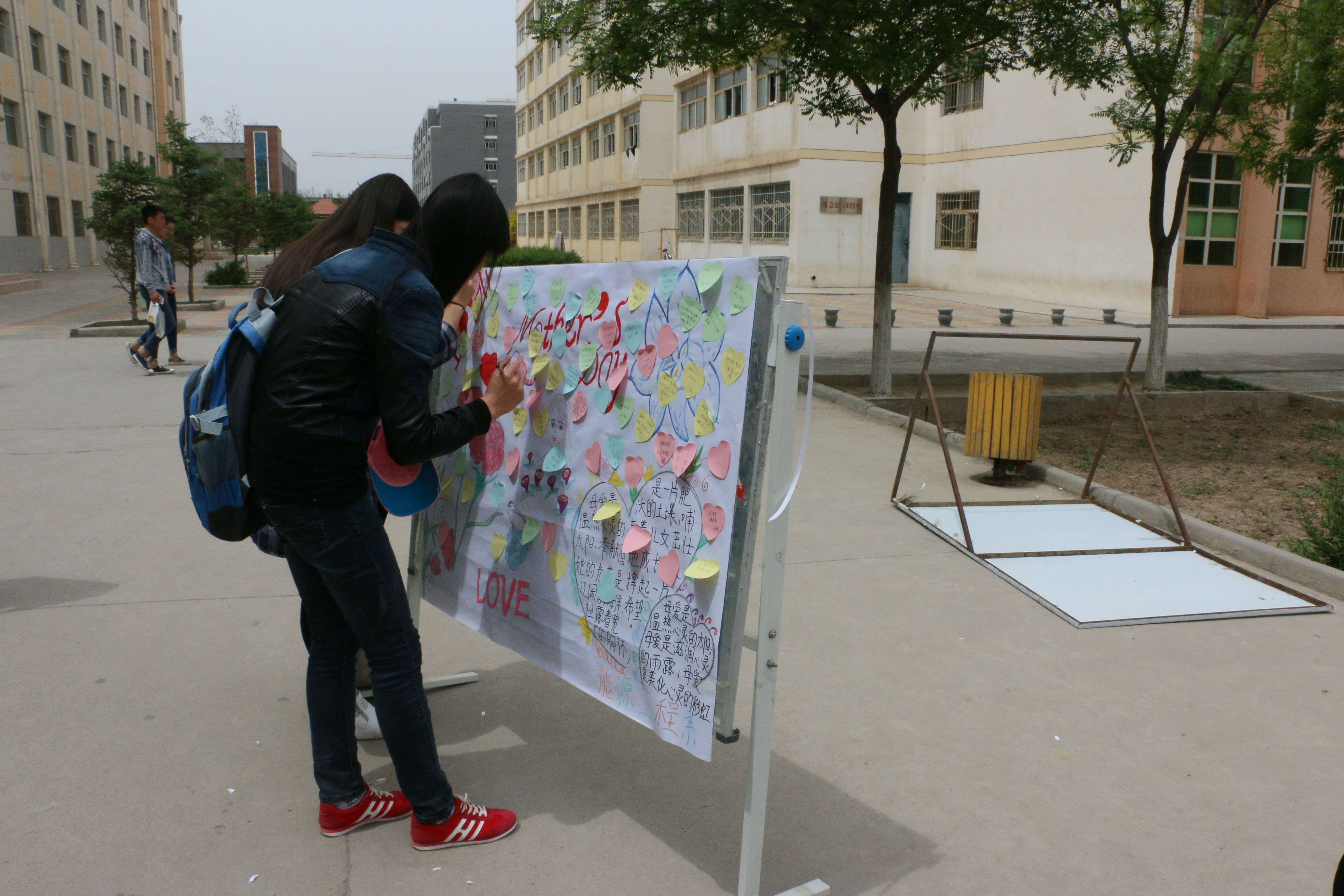 今天早晨十一點(diǎn)左右,能源系全體學(xué)生會(huì)成員以為這次的活動(dòng)準(zhǔn)備好了一切,有母親節(jié)的海報(bào)、母親節(jié)許愿瓶、對(duì)媽媽想說的話的展板、以及自己對(duì)媽媽祝福的簽名
