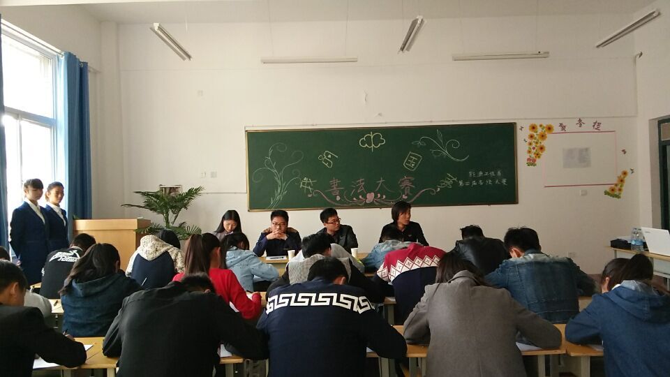 能源工程系第四屆書法大賽于2015年10月20日下午5點在明德樓104教室隆重舉行。本次書法大賽經(jīng)過層層海選,最終有18位同學(xué)進入決賽。這次書法大賽邀請了侯舵、付江鵬兩位老師。