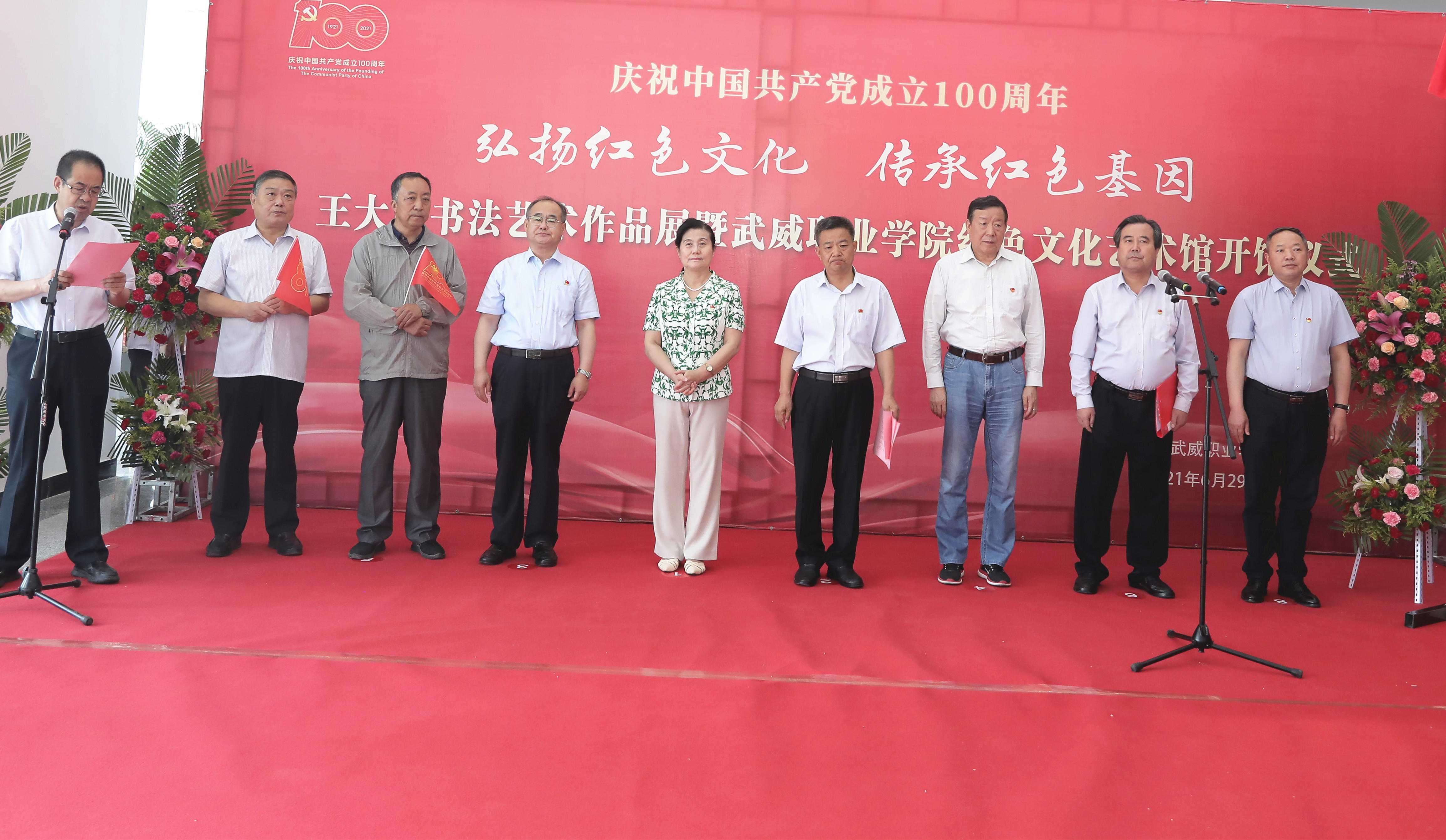 黨委書記、院長趙明在致辭中表示,在全國上下熱烈慶祝中國共產(chǎn)黨建黨100周年、深入開展黨史學習教育之際,我們迎來王大臣書法作品展開展暨武威職業(yè)學院紅色文化藝術館開館,這既是學院慶祝建黨100周年、開展黨史學習教育重要活動,也是學院“雙高計劃”院校建設的重要成果。