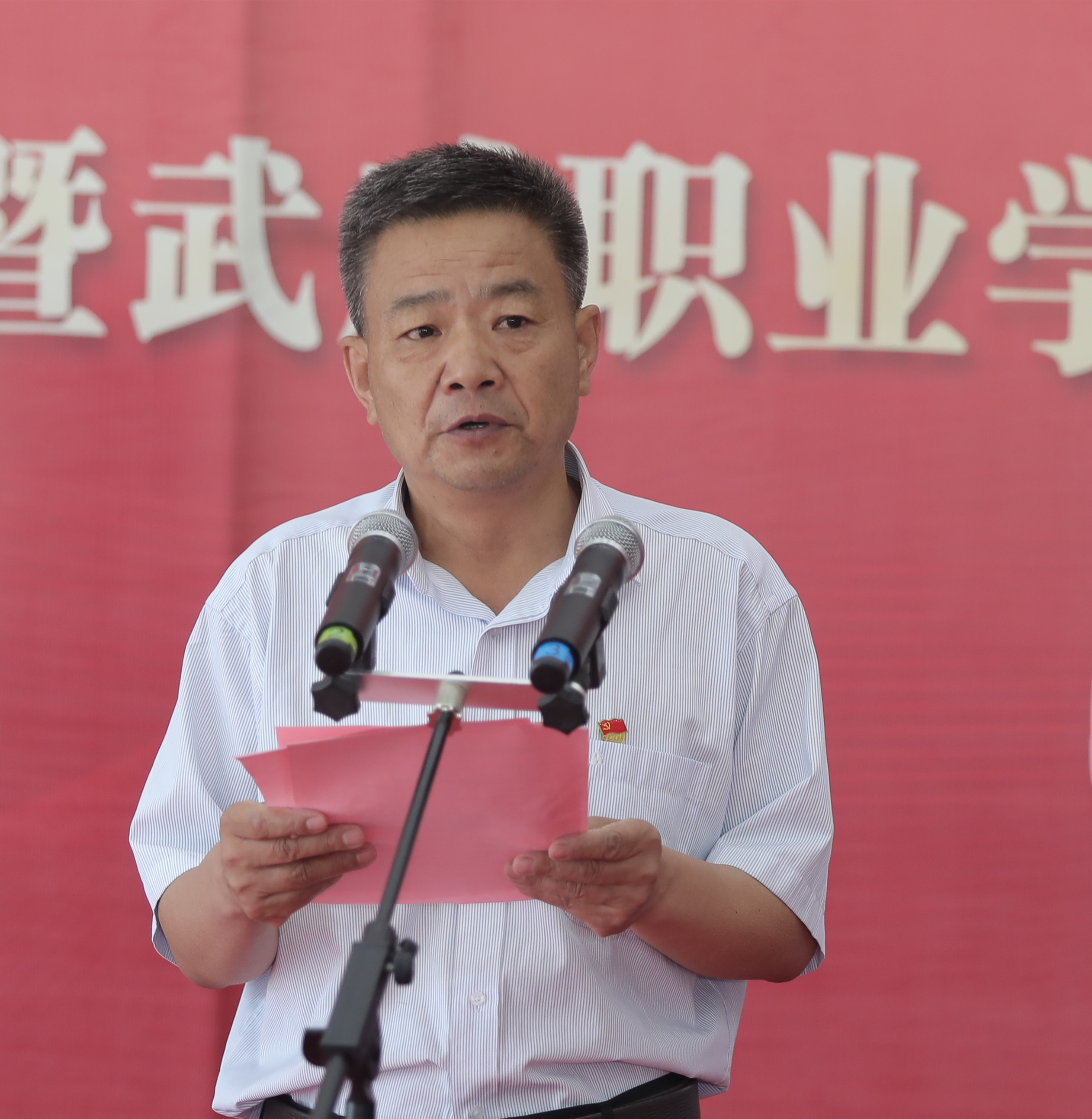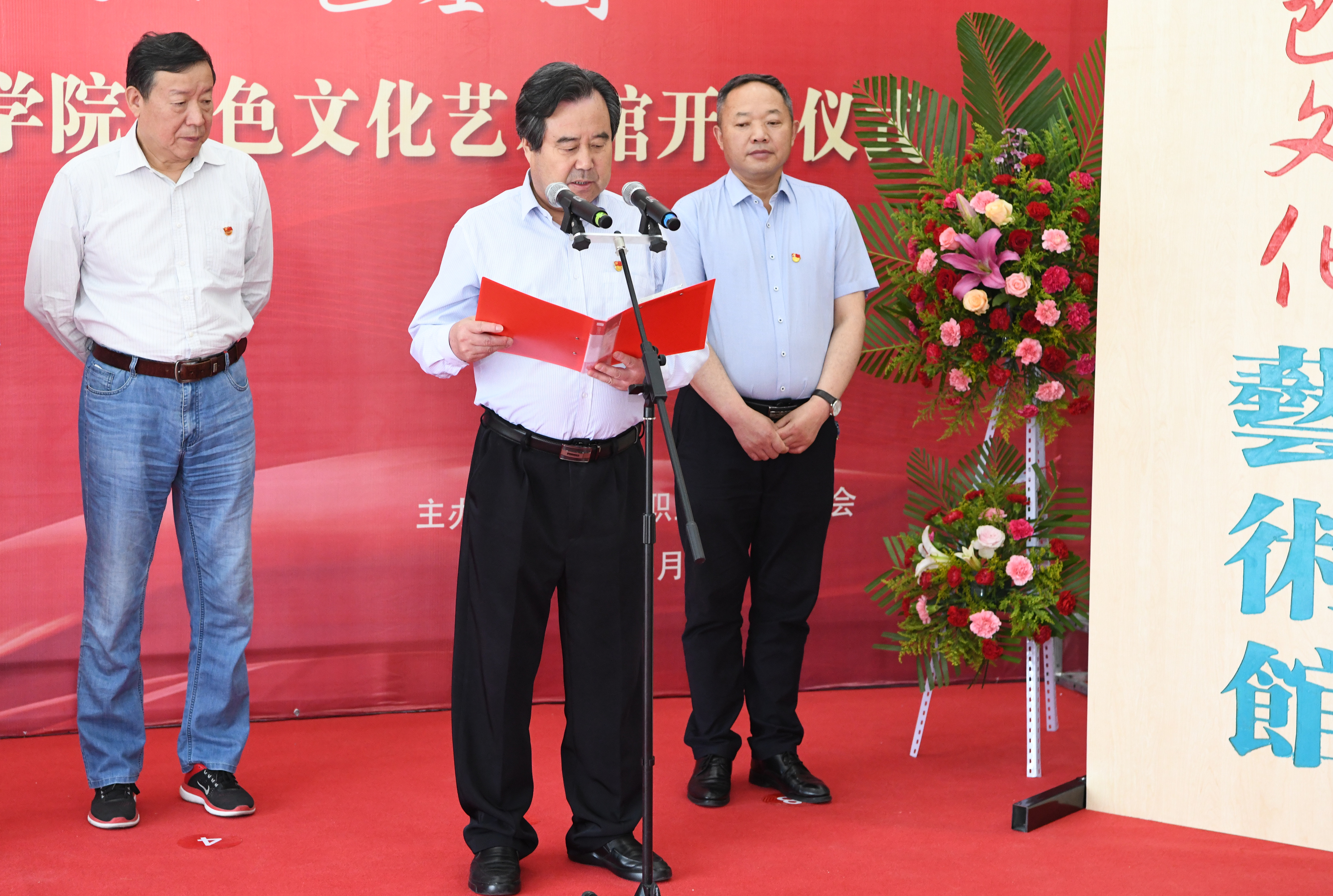 學院客座教授、涼州區(qū)政協(xié)原副主席王大臣先生在致辭中表示,值此慶祝建黨100周年之際,共同見證武威職業(yè)學院紅色文化藝術館開館,心情非常激動。武威職業(yè)學院是國家骨干高職院校,甘肅省優(yōu)質(zhì)校、“雙高計劃”建設院校,發(fā)揮著培育擔當民族復興大任時代新人的作用。作為學院的客座教授,將自己“百年華章·紅色隴原——獻禮建黨一百周年書法展”的143副作品,毫無保留的全部捐贈給學院,共建這個紅色文化藝術館,感到非常榮幸。全黨上下正在開展黨史學習教育,紅色文化藝術館的建立,正是武威職業(yè)學院賡續(xù)紅色血脈、繼承光榮傳統(tǒng),以紅色文化鑄魂育人的生動體現(xiàn)。希望老師們、同學們,能夠通過這些作品感悟紅色精神、汲取奮進力量,在新時代新征程中唱響“立德樹人”的贊歌。