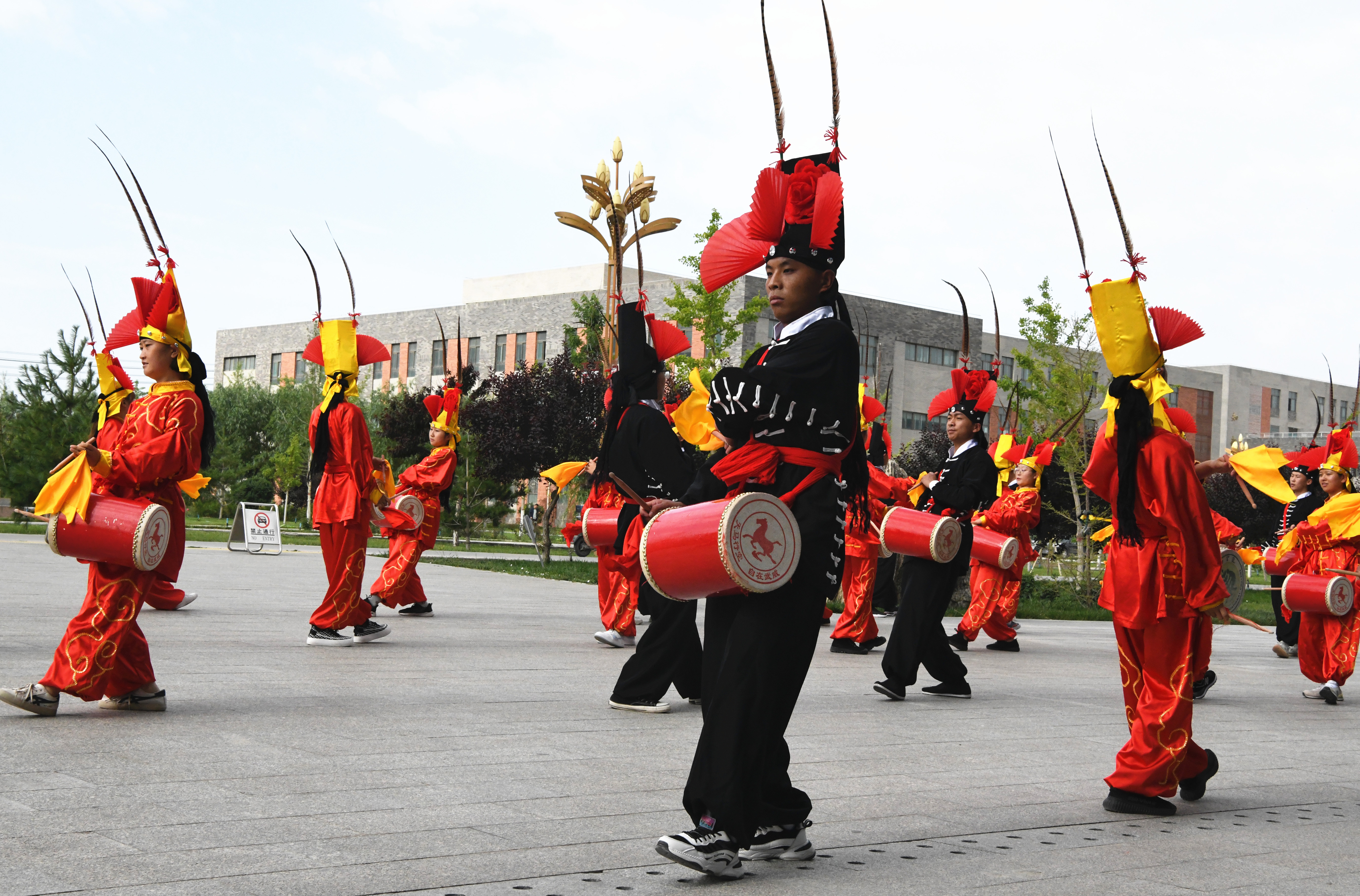 學院大學生攻鼓子藝術團進行了非物質(zhì)文化遺產(chǎn)——涼州攻鼓子表演。