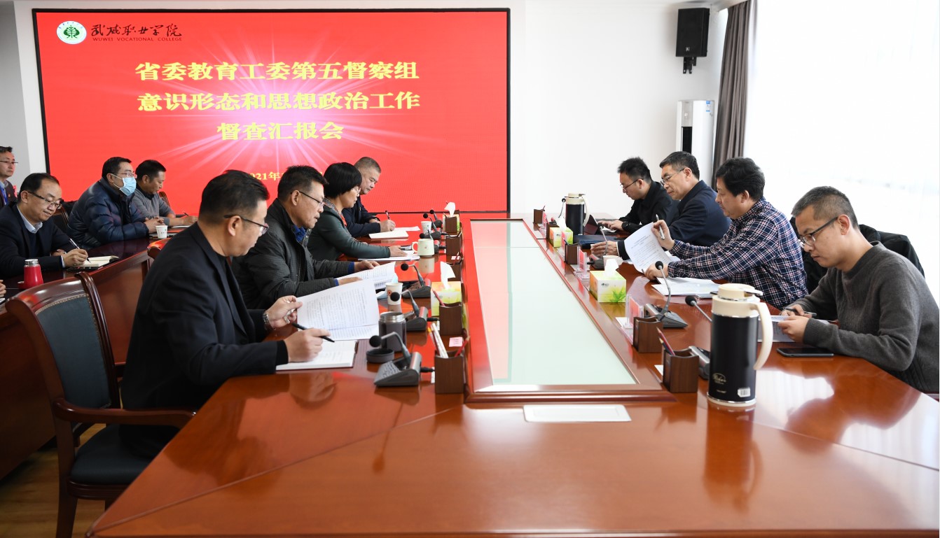 12月9日下午,由蘭州城市學(xué)院黨委委員、宣傳部部長(zhǎng),副校長(zhǎng)、檢查組組長(zhǎng)李慕堂,甘肅農(nóng)業(yè)職業(yè)技術(shù)學(xué)院宣傳部部長(zhǎng)、馬克思主義學(xué)院院長(zhǎng)張勝聞、蘭州信息科技學(xué)院黨委宣傳部部長(zhǎng)焦磊、蘭州城市學(xué)院黨委宣傳部宋福組成的省委教育工委第五檢查組來(lái)我院督查指導(dǎo)學(xué)院思想政治工作開(kāi)展情況。黨委委員、副院長(zhǎng)王永緒、何毅,紀(jì)委書(shū)記、監(jiān)察專(zhuān)員陳曉煜,黨委委員、副院長(zhǎng)王守云陪同檢查。