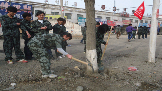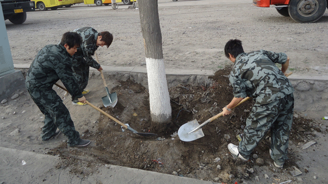 年年植樹,人人植樹,公益植樹,熱情的高漲,無疑是一種社會的進步。在老師的帶領下,同學們進行分組、領取勞動工具。到植樹點后同學們兩兩組合,在馬路兩側一字排開,揮動鐵鍬,松土挖坑,干得十分起勁,盡管道路上塵土飛揚,參加植樹活動的老師同學卻揮汗實干,從學院西門口到皇臺酒廠一段的馬路兩側留下了同學們勞動的身影和歡快的笑語。
