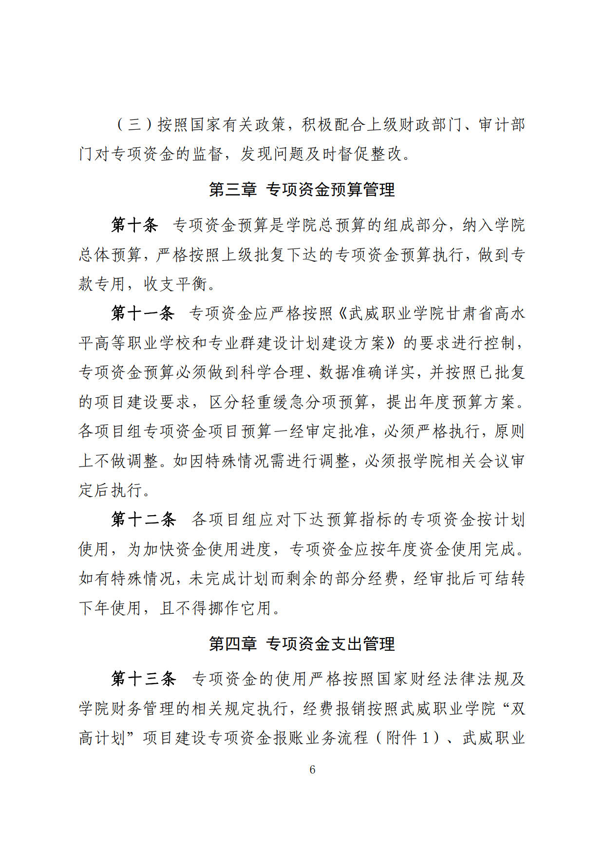 關(guān)于印發(fā)《武威職業(yè)學(xué)院“雙高計劃”項目建設(shè)專項資金管理辦法》的通知