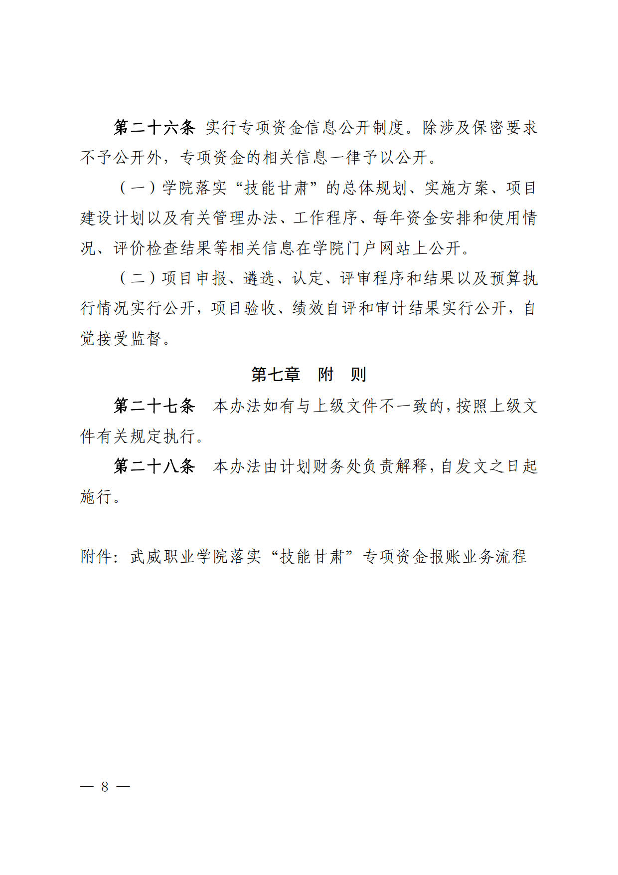 關于印發(fā)《武威職業(yè)學院落實“技能甘肅”專項資金管理辦法》的通知
