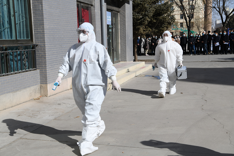 本次應(yīng)急演練重點(diǎn)圍繞體溫測(cè)試、清潔消毒、應(yīng)急處置等多項(xiàng)防控重點(diǎn)內(nèi)容開(kāi)展實(shí)地演練。演練過(guò)程中,疫情處置應(yīng)急各小組嚴(yán)陣以待、聞令而動(dòng),按照既定預(yù)案迅速行動(dòng)、配合密切,準(zhǔn)確高效地完成了疫情防控應(yīng)急演練各項(xiàng)任務(wù),達(dá)到了演練的預(yù)期目的。學(xué)校疫情防控領(lǐng)導(dǎo)小組全體成員,市、區(qū)疾控中心專(zhuān)家,武威市腫瘤醫(yī)院(對(duì)接支持醫(yī)院),全體輔導(dǎo)員、班主任,醫(yī)務(wù)室全體人員,其他科室相關(guān)人員參加了演練。學(xué)校副校長(zhǎng)王永緒、王守云主持演練。