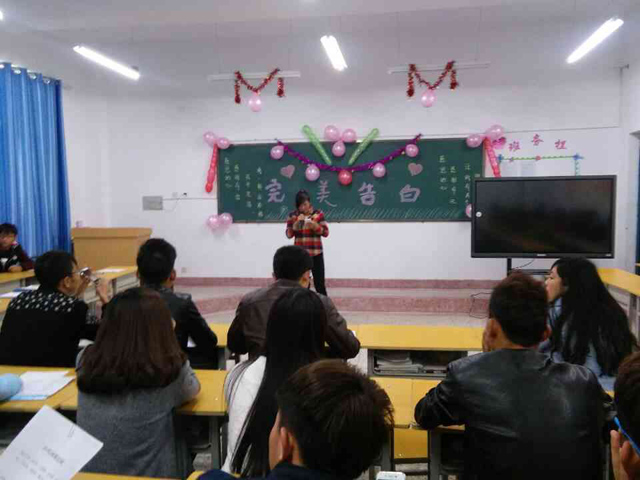 2015年11月20日下午,15級農(nóng)村能源與環(huán)境技術大專班以感恩父母為主題在明德樓103教室舉行光伏社會化技能課程實踐活動—《完美告白》。參加本次活動的人員有:胡建宏老師、15級農(nóng)村能源與環(huán)境技術大專班和15級光伏材料大專班全體學生。