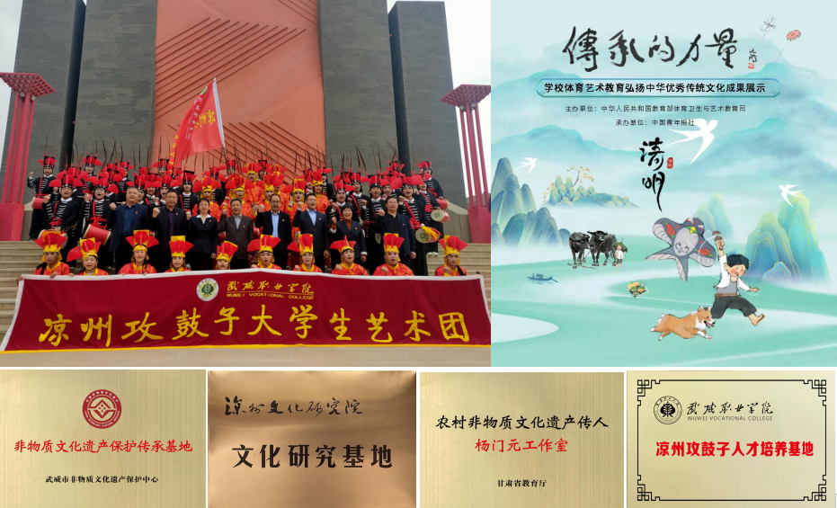 近年來,學(xué)校全力推進(jìn)“雙高計(jì)劃”項(xiàng)目建設(shè),組織成立了武威職業(yè)學(xué)院涼州攻鼓子大學(xué)生藝術(shù)團(tuán),聘請(qǐng)國家級(jí)非遺代表性傳承人楊門元親傳技藝,并開展了系列展演活動(dòng),著力打造特色校園文化品牌,助推文化繁榮、社會(huì)文明的新武威和華夏文明傳承創(chuàng)新區(qū)建設(shè),服務(wù)鄉(xiāng)村振興戰(zhàn)略。