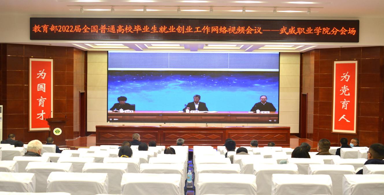 11月19日下午,教育部、人力資源社會保障部召開2022屆普通高校畢業(yè)生就業(yè)視頻會議。教育部黨組書記、部長懷進鵬,人力資源社會保障部黨組成員、副部長李忠出席會議并講話,教育部黨組成員、副部長翁鐵慧主持會議。我院設(shè)立武威職業(yè)學(xué)院分會場,學(xué)院黨委書記、院長趙明,副院長王守云,招就處、雙創(chuàng)中心、學(xué)工處相關(guān)負(fù)責(zé)同志,各教學(xué)院系黨總支書記、主任、就業(yè)工作輔導(dǎo)員及畢業(yè)班班主任共計86人,在學(xué)院學(xué)生發(fā)展中心菁英廳集中參加網(wǎng)絡(luò)視頻會議。