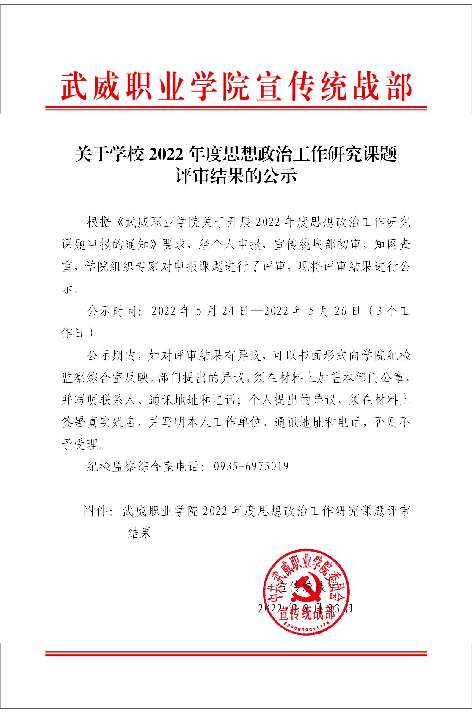 附件:武威職業(yè)學(xué)院2022年度思想政治工作研究課題評審結(jié)果