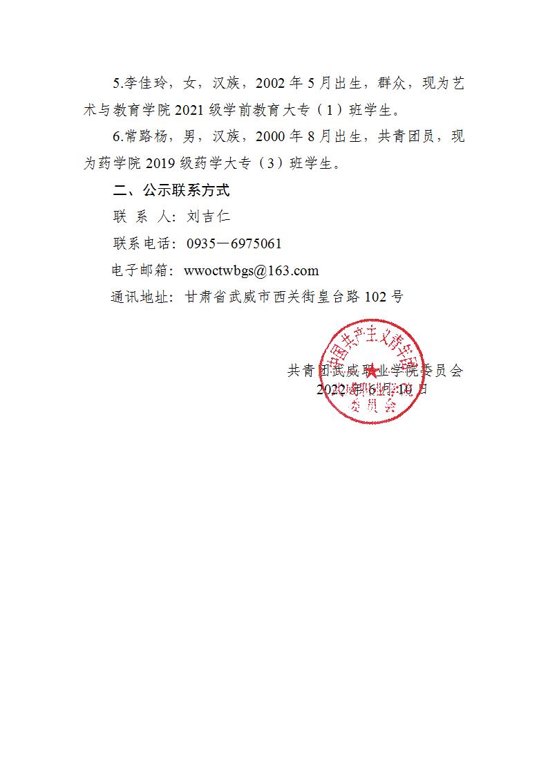 關于2022年“武威職業(yè)學院大學生自強之星”評選結果的公示
