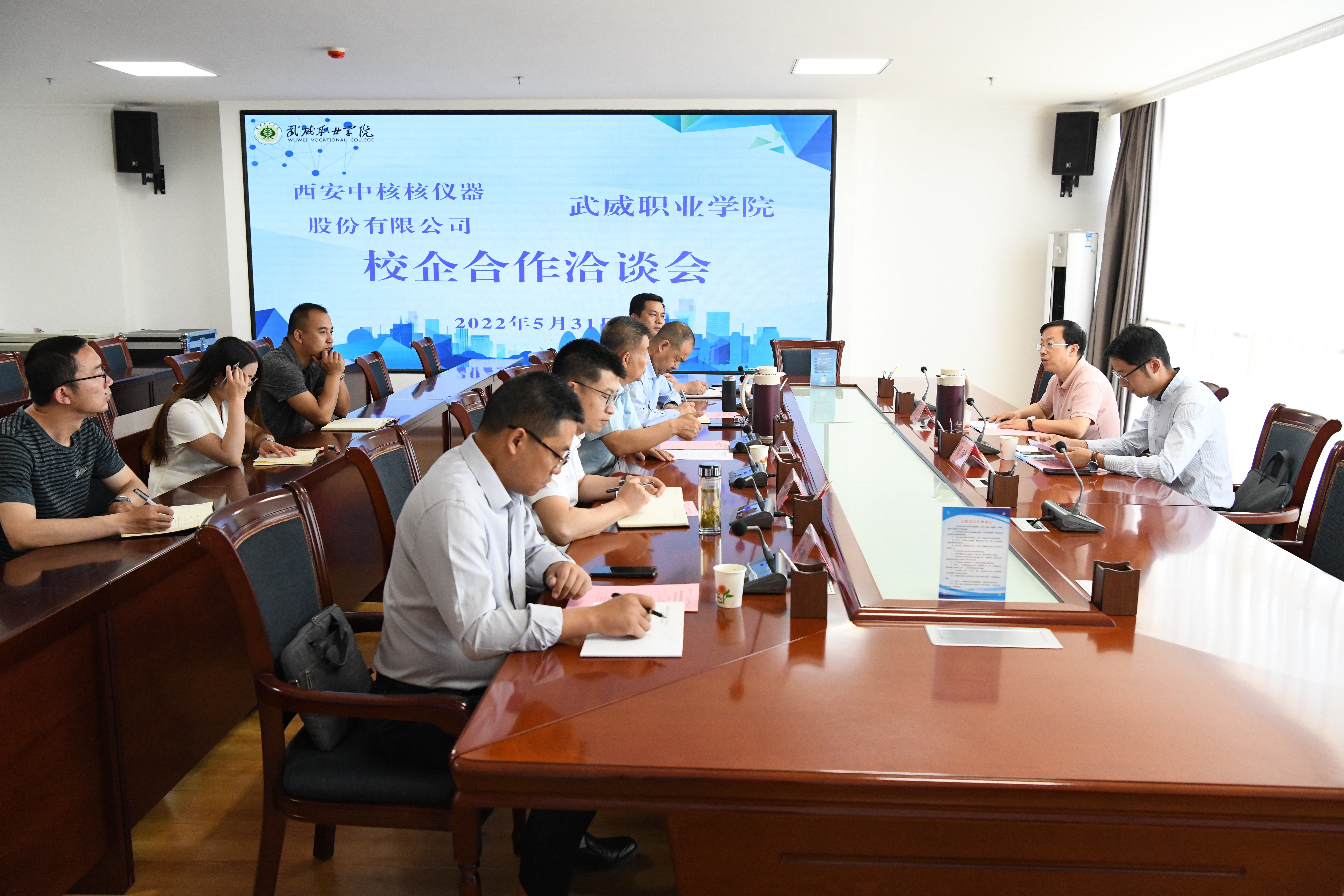 5月31日上午,西安中核核儀器股份有限公司儀器公司黨支部書記羅曦、同位素儀器公司主管索飛受邀到學??疾煺{(diào)研并洽談校企合作。學校黨委書記、校長趙明,黨委副書記翟存祥、招生就業(yè)處副處長董鵬、中科低碳新能源技術學院黨總支書記胡建宏、副院長黃述杰、部分專業(yè)課教師參與洽談。