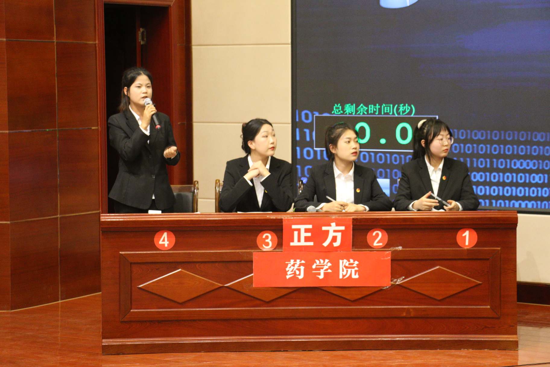 經(jīng)過11場次的比賽,藥學院代表隊和護理學院代表隊進入最后決賽。決賽現(xiàn)場,正反雙方針對誠信主要靠“他律”還是主要靠“自律”拉開激烈交戰(zhàn)。雙方辯手圍繞辯題你來我往、侃侃而談、針鋒相對,卻不失風度;立論階段,旁征博引,攻辯階段雙方辯手“激烈廝殺”;自由辯論環(huán)節(jié),辯論雙方的金句妙言、據(jù)理力爭、滔滔不絕將比賽氣氛推向高潮,贏得在場聽眾的陣陣掌聲。