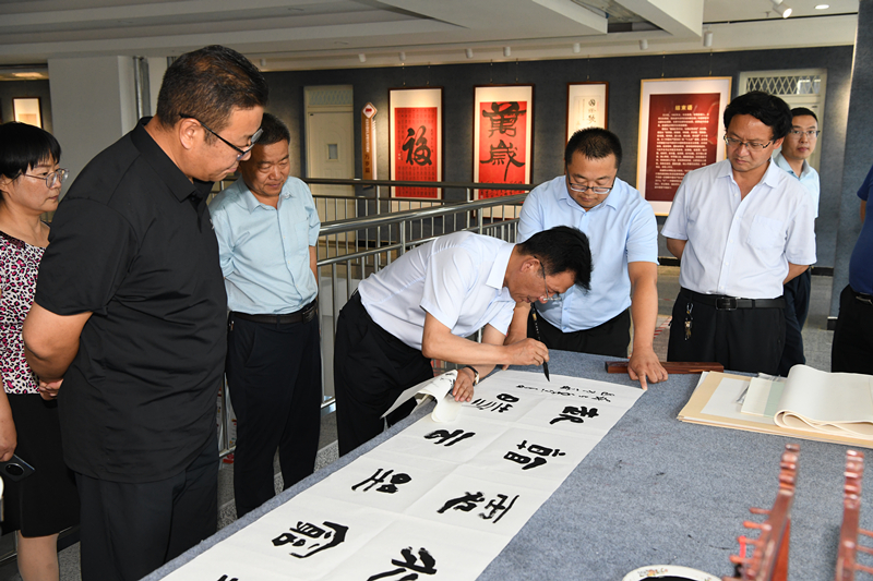 捐贈(zèng)儀式前,齊澤山一行參觀了學(xué)校紅色文化藝術(shù)館、學(xué)生發(fā)展中心、雙創(chuàng)中心、藝術(shù)與教育學(xué)院書法實(shí)訓(xùn)室等場地,并現(xiàn)場指導(dǎo)學(xué)校志通書法協(xié)會(huì)學(xué)生習(xí)作。