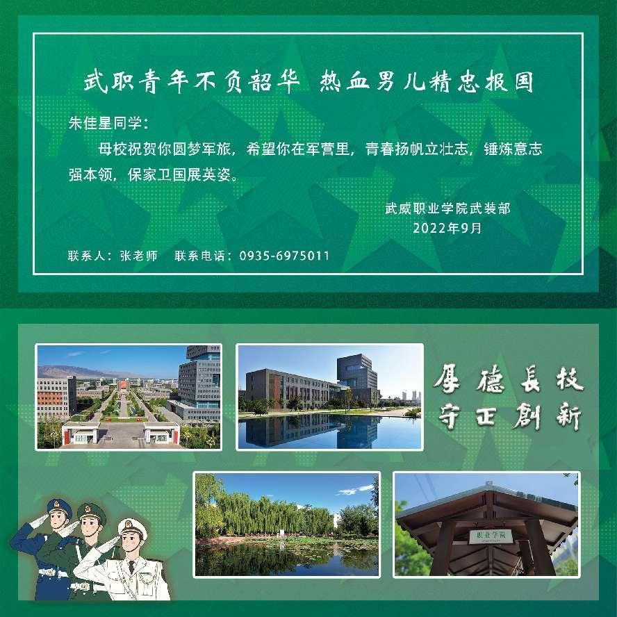 金鑫代表涼州區(qū)人武部和兵役機關(guān),感謝武威職業(yè)學院多年來一直對征兵工作的大力支持,感謝學校為部隊輸送優(yōu)秀青年,并要求入伍大學生,嚴格訓練,做好從學生到戰(zhàn)士的迅速轉(zhuǎn)變,早日成為一名合格的人民子弟兵。