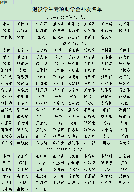 關(guān)于補發(fā)退役學生專項助學金的公示