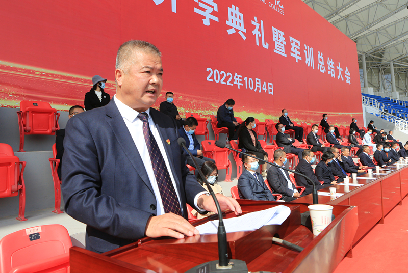 金秋的校園陽光明媚,嘹亮的歌聲唱響青春。10月4日上午9時(shí),在莊嚴(yán)隆重的升國旗儀式結(jié)束后,2022級(jí)新生開學(xué)典禮暨軍訓(xùn)總結(jié)大會(huì)在體育場拉開了帷幕。學(xué)校黨委書記、校長趙明出席大會(huì)并講話,涼州區(qū)人武部上校政委丁俊強(qiáng)受邀出席。校領(lǐng)導(dǎo)翟存祥、王永緒、田迎春、何毅、陳曉煜、張開禮出席大會(huì)。大會(huì)由學(xué)校黨委委員、副校長王守云主持。